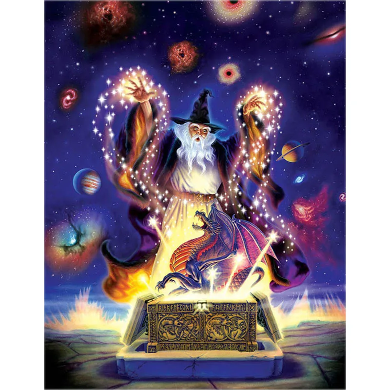 Алмазная 5D картина волшебника с полным наполнением, Волшебник сделай сам, вышивка стразами, дракон в коробке, галактика, вышивки крестиком, украшение для дома Z40