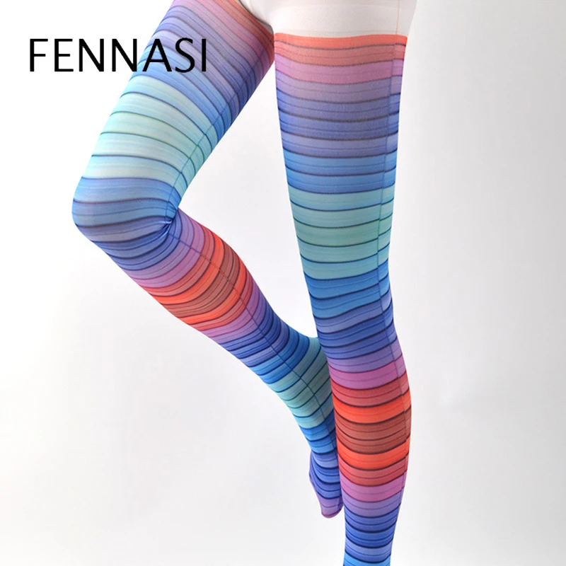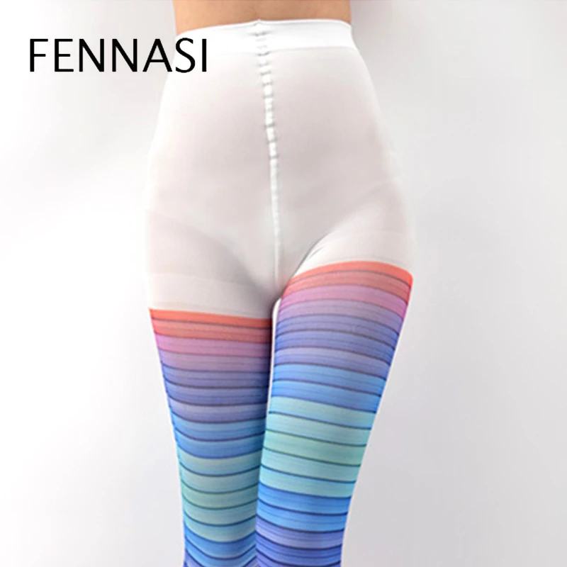 Пикантные цветные колготки FENNASI с радужным рисунком для танцев, модные клейкие женские колготки в горизонтальную полоску, красивые колготки в стиле харадзюку