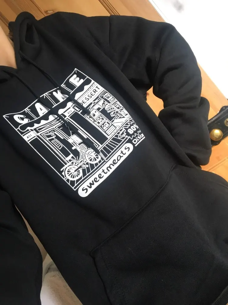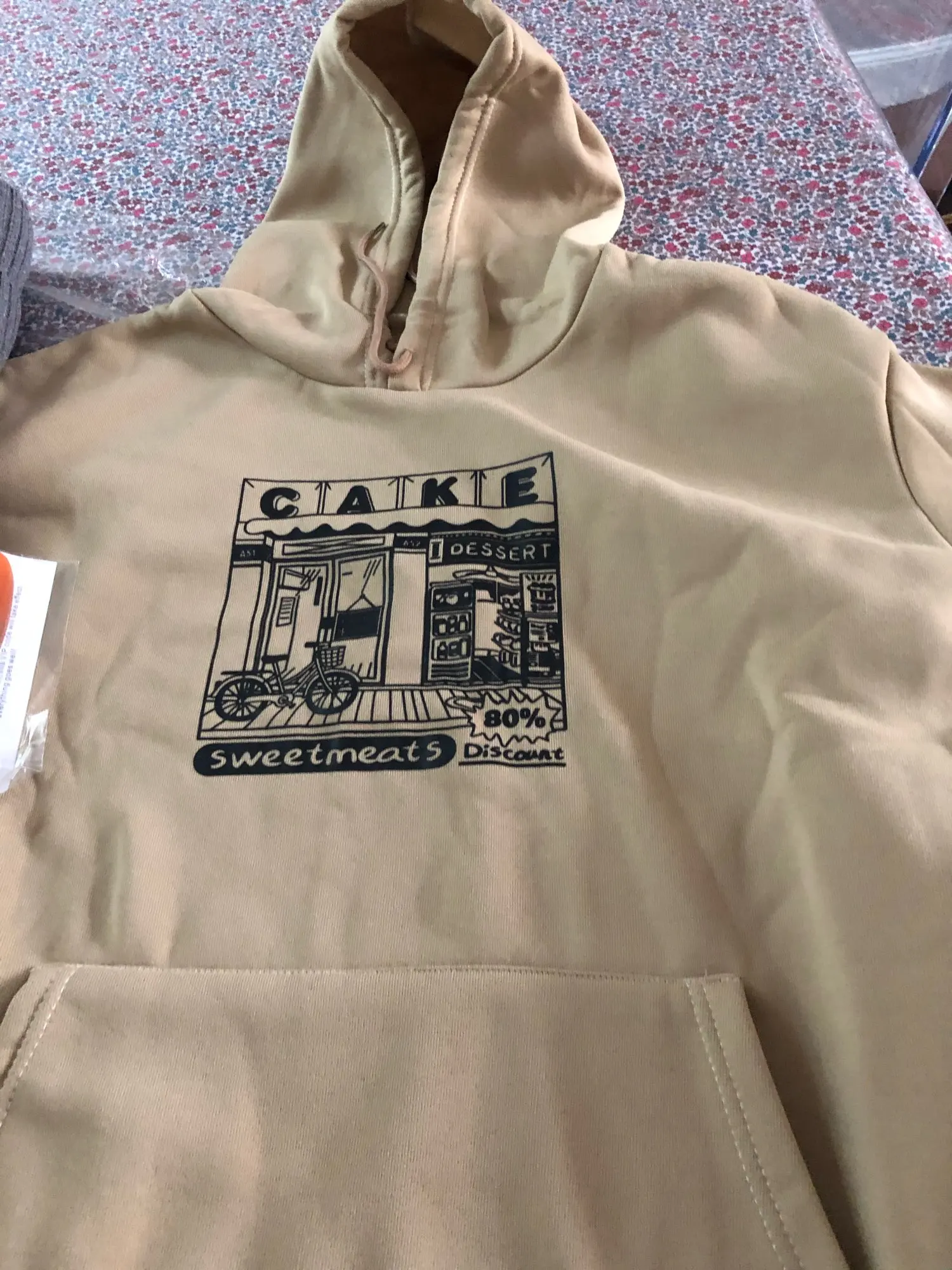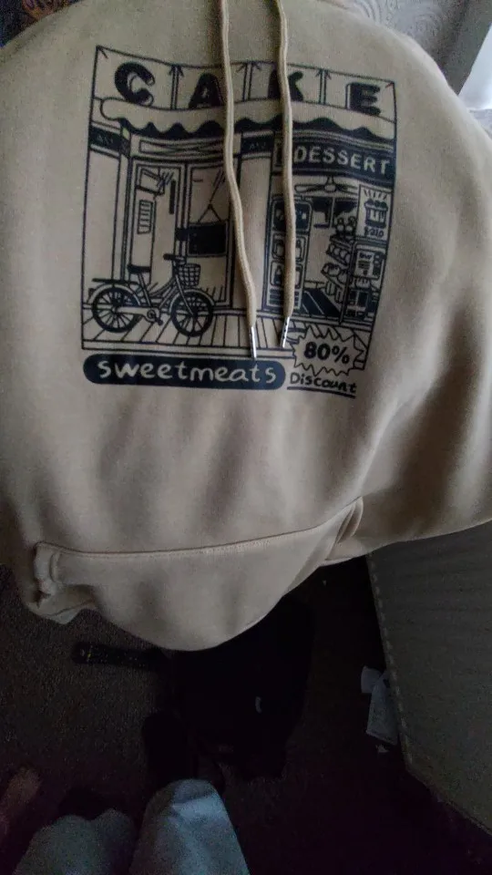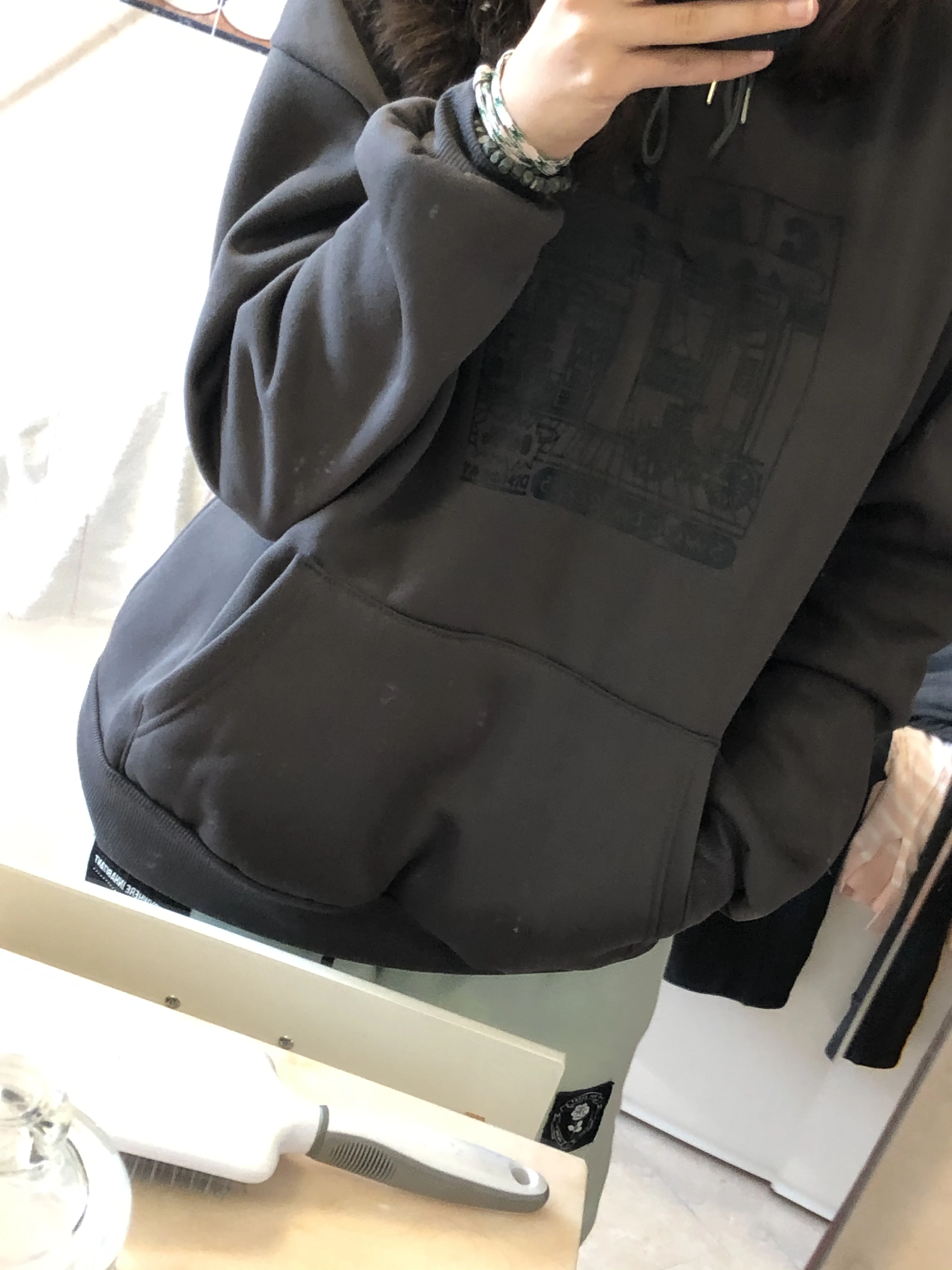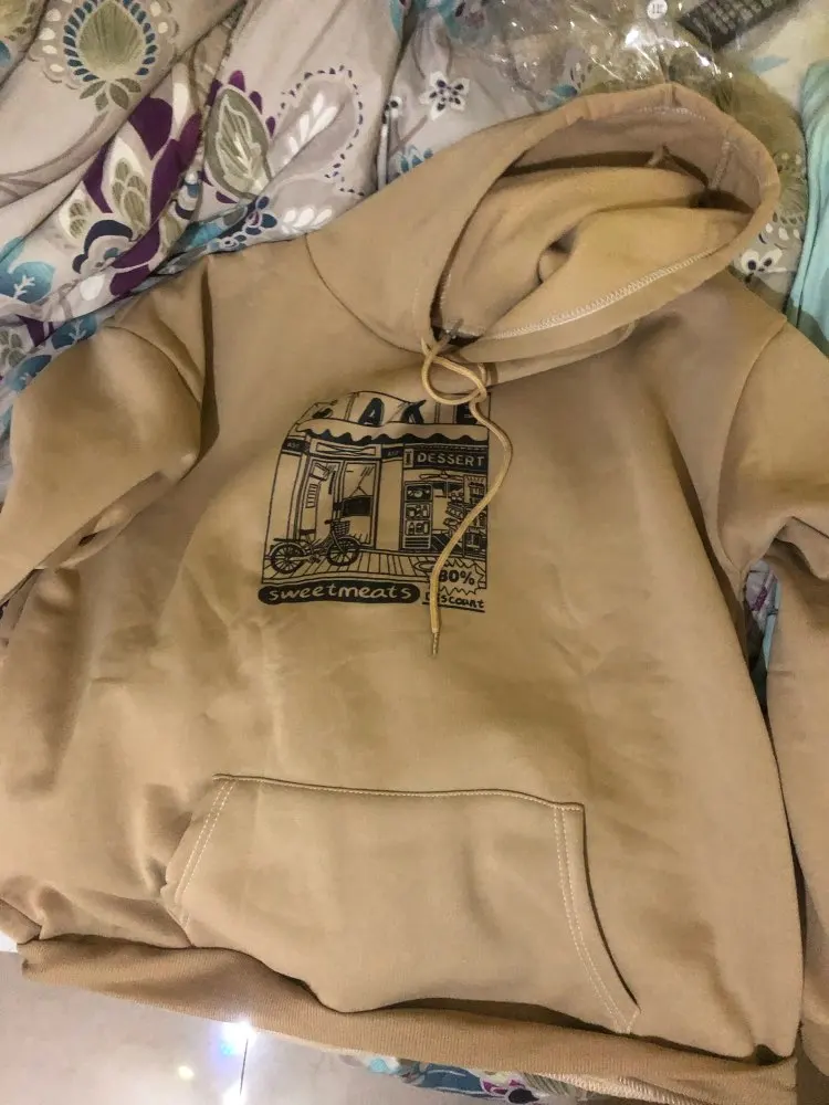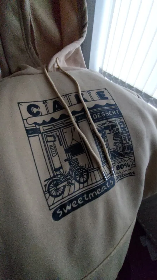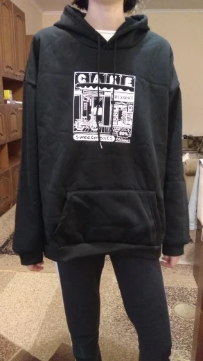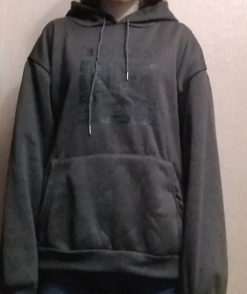 Размер соотвествует, принт хороший, немного порват карман у худи, но не страшно, в целом рада заказу)