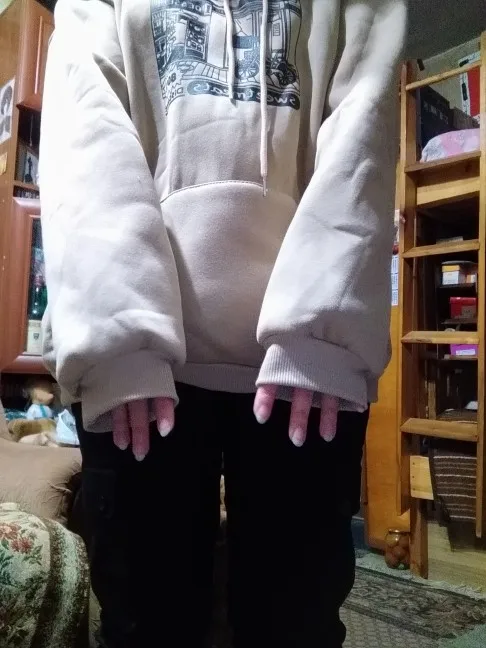 Прийшло все швидко і у хорошій якості. у подарунок дали гребінець. Худі в житті набагато темніша, нічого не торчить. Дуже тепле. У мене ріст 170. Розмір М якраз як оверсайз. Пришло все быстро и в хорошем качестве. в подарок дали расческу. Худые в жизни гораздо темнее, ничего не торчат. Очень теплое. У меня рост 170. Размер М раз как оверсайз.