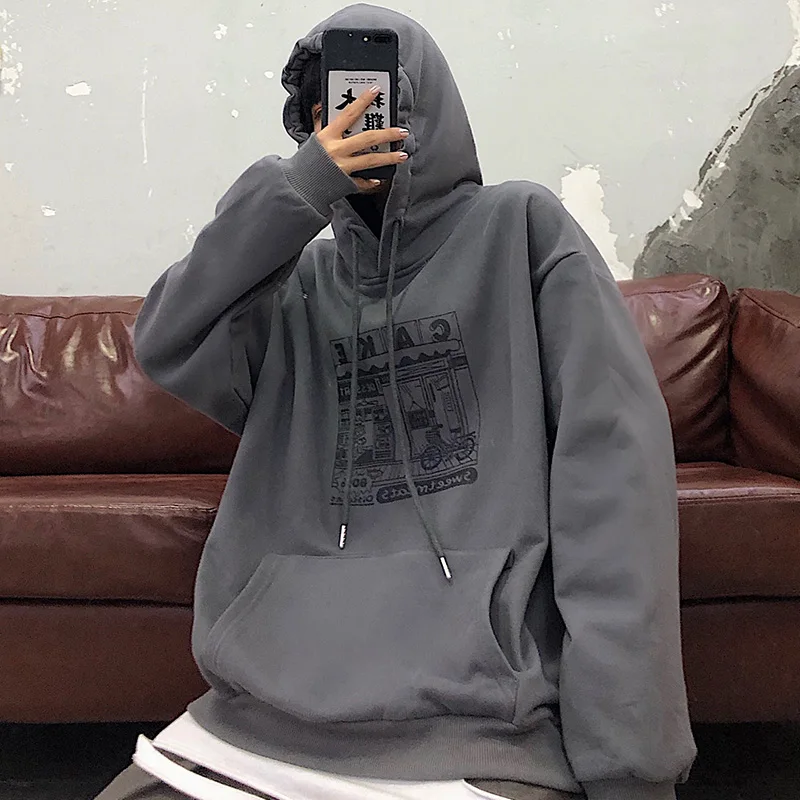 Женские толстовки с капюшоном и принтом, утепленные, бархатные, унисекс, парные пуловеры, толстовки, уличная одежда в стиле хип-хоп, универсальные, оверсайз