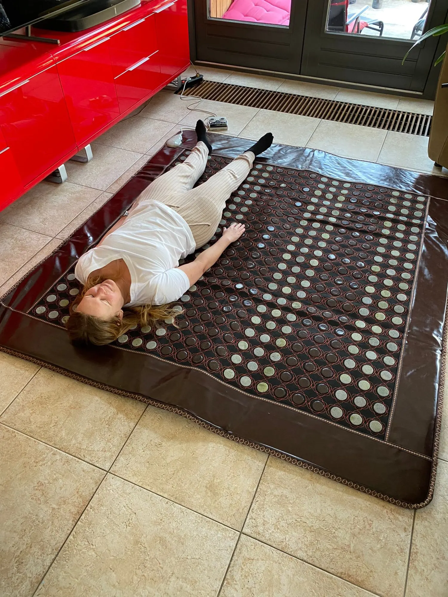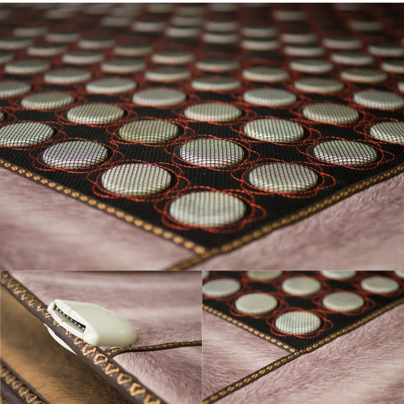 • Наслаждайтесь преимуществами для здоровья глубоких проникающих дальних инфракрасных кристальных лучей тепловой терапии на вашем теле! -Это полноразмерный коврик 1,5x1.9 м/59 ''x 74.8'' (дюйм) для всего вашего тела. Используйте его в качестве гибкого коврика, чехла или одеяла. Он очень гибкий и удобный, можно свернуть и сложить. Используйте его на полу или на кровати во время сна, или оберните и накройте себя, чтобы избежать боли в суставах и боли в мягких тканях, повысить метаболизм и снять усталость, стресс, тревожность и подавление.• Комбинированные свойства трех ациентных целебных камней-основной техники китайской медицины иглоукалывания, Gua Sha и экстракта моксибюстиона из бианстона, используемого для исцеления с древних времён. Турмалиновые преимущества для здоровья включают успокаивание ума, детоксикационные способности, регенерацию клеток. Известно, что он снимает боль в мышцах, суставах, артрите, нервах и костях. Нефрит славится своей способностью улучшать кровообращение и устойчивость, успокаивать боль в спине и глубоких тканях, гипертонию, поддерживать сердце и легкие.• Глубокое заживление дальних инфракрасных лучей-горячий биан, нефрит и турмалин излучают дальнее инфракрасное излучение до 6-8 дюймов вглубь тела пробуждая целительные силы наших клеток. Исцеляющее тепло проникает в ваши напряженные мышцы снимая напряжение и жесткость. Лучистые кристаллические лучи работают на клеточном уровне, делая клетки сжигающими калории и производя больше энергии-вот почему ваш помехи, ум-активность, метаболизм и температура сердечника тела сохраняют повышенный уровень здоровья в течение многих часов после процедуры. • Восстанавливающие отрицательные ионы-Турмалин славится пироэлектрической способностью генерировать отрицательные ионы при искажении тепла. Подушечка проводит ионы через кожу, чтобы восстановить естественное электрическое поле наших клеток и обезвредить свободные радикалы по всему телу. Биан, нефрит и турмалин естественным образом выделяют до 1500 куб. См анионов расслабляя вас, улучшая ваше настроение и привнося ощущение кусочка и хорошего самочувствия. Куполообразные камни приносят пользу акупрессуры. Вы будете чувствовать себя лучше и хорошо спите всю ночь.