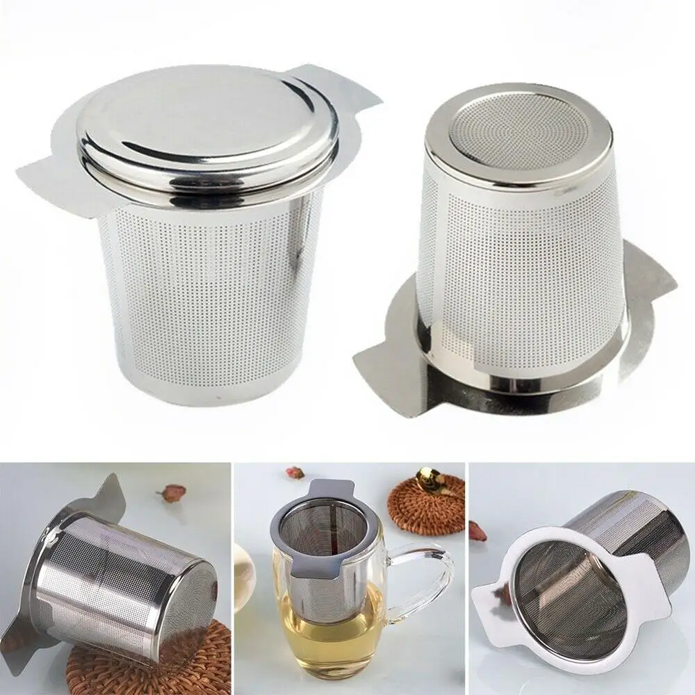 Ситечко для заварки чая из нержавеющей стали, металлическая чашка, фильтр с отрывными листами с крышкой