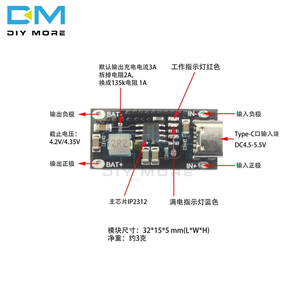 Тип C USB полимерная Тройная литиевая батарея Быстрая зарядка плата вход ток высокого тока 3 А 5 В до 4,2 в 4,35 в IP2312 CCCV режим