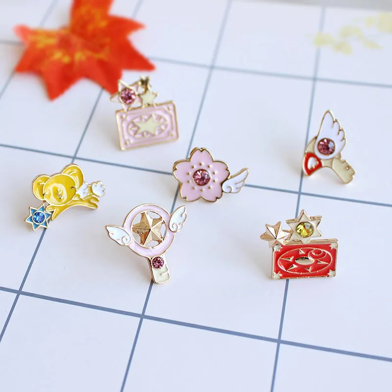 Булавки для аниме-карт, булавки, броши, крылья для карт, звезда, палочка, волшебный ключ, керо, джинсовые куртки, булавки, значки, японские ювелирные изделия