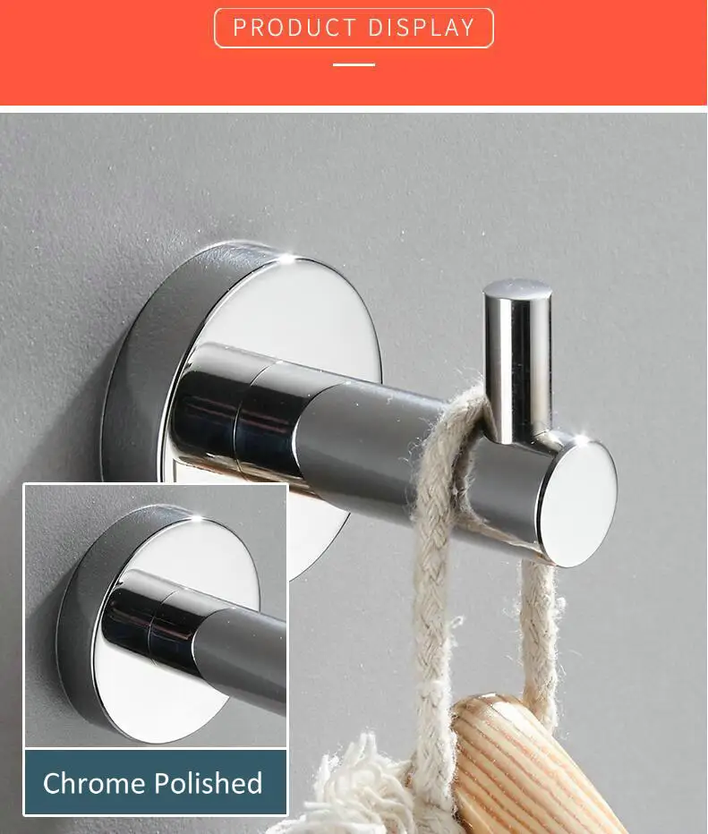 Крючок для банного пальто, крючок для халата из нержавеющей стали, настенный крючок для полотенец, хромированный полированный крючок для одежды, фурнитура для ванной комнаты