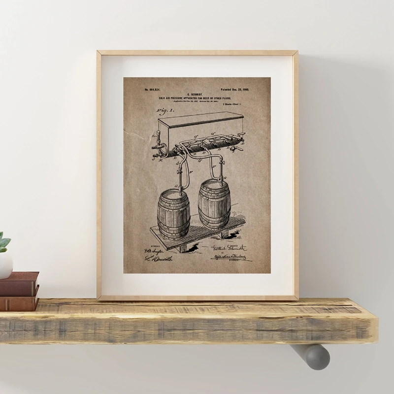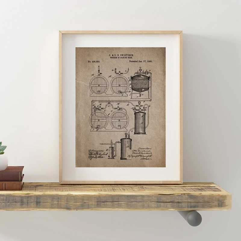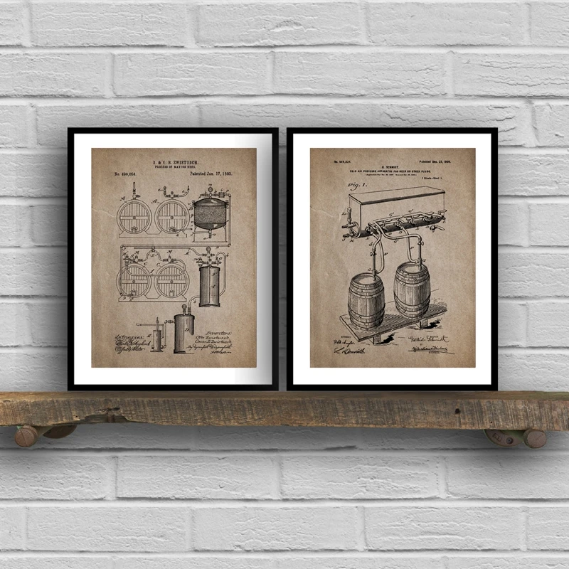 PurposeBeer Brewing Blueprint Art Painting Wall Picture Home Decoration