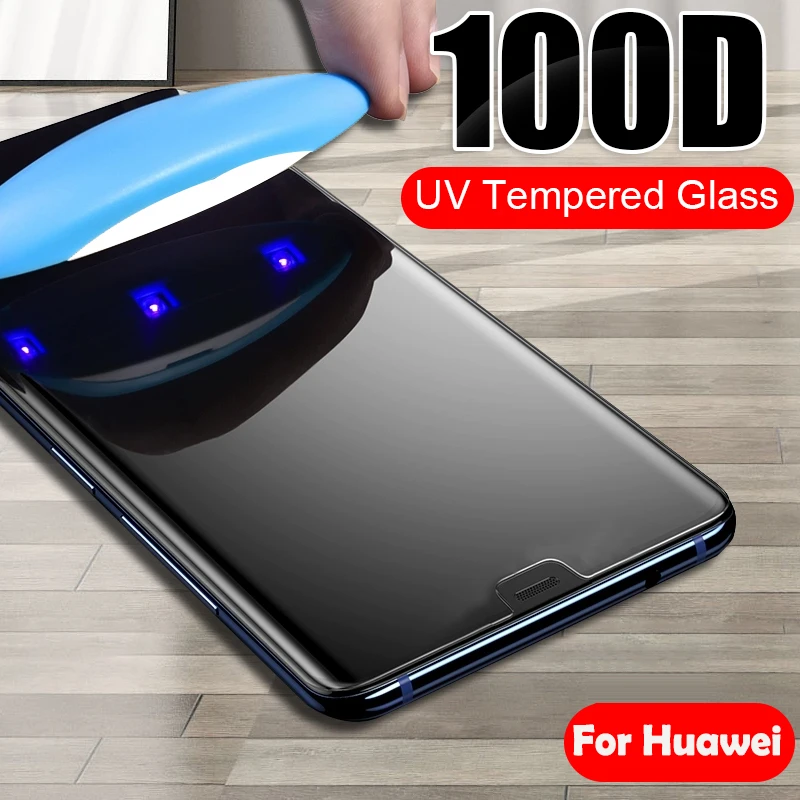 100D УФ Жидкий Клей закаленное стекло для Huawei P40 Pro P30 P20 За...