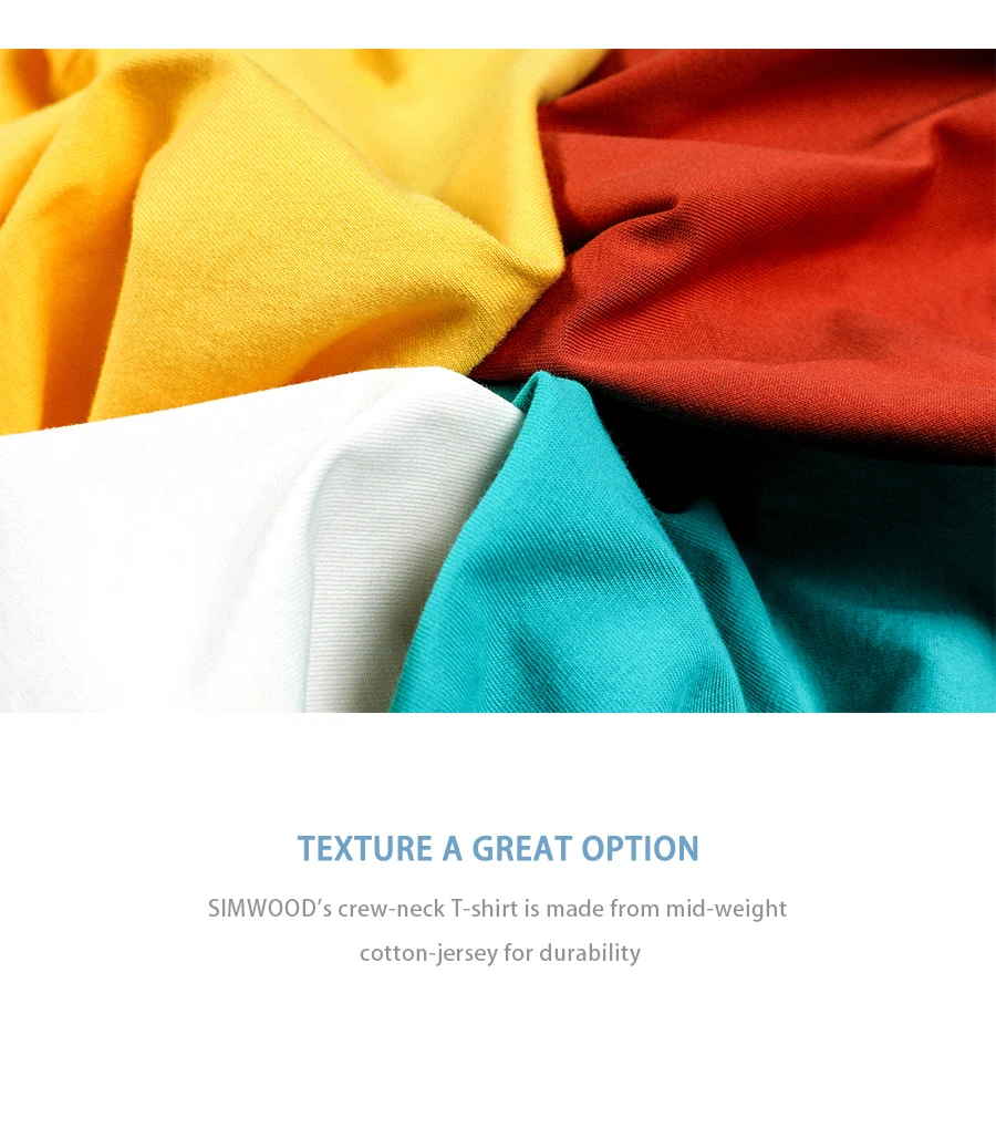 SIMWOOD 2022 летняя новая футболка из 100% хлопка мужская Однотонная футболка с круглым вырезом базовые футболки размера плюс топы с короткими рукавами 190402