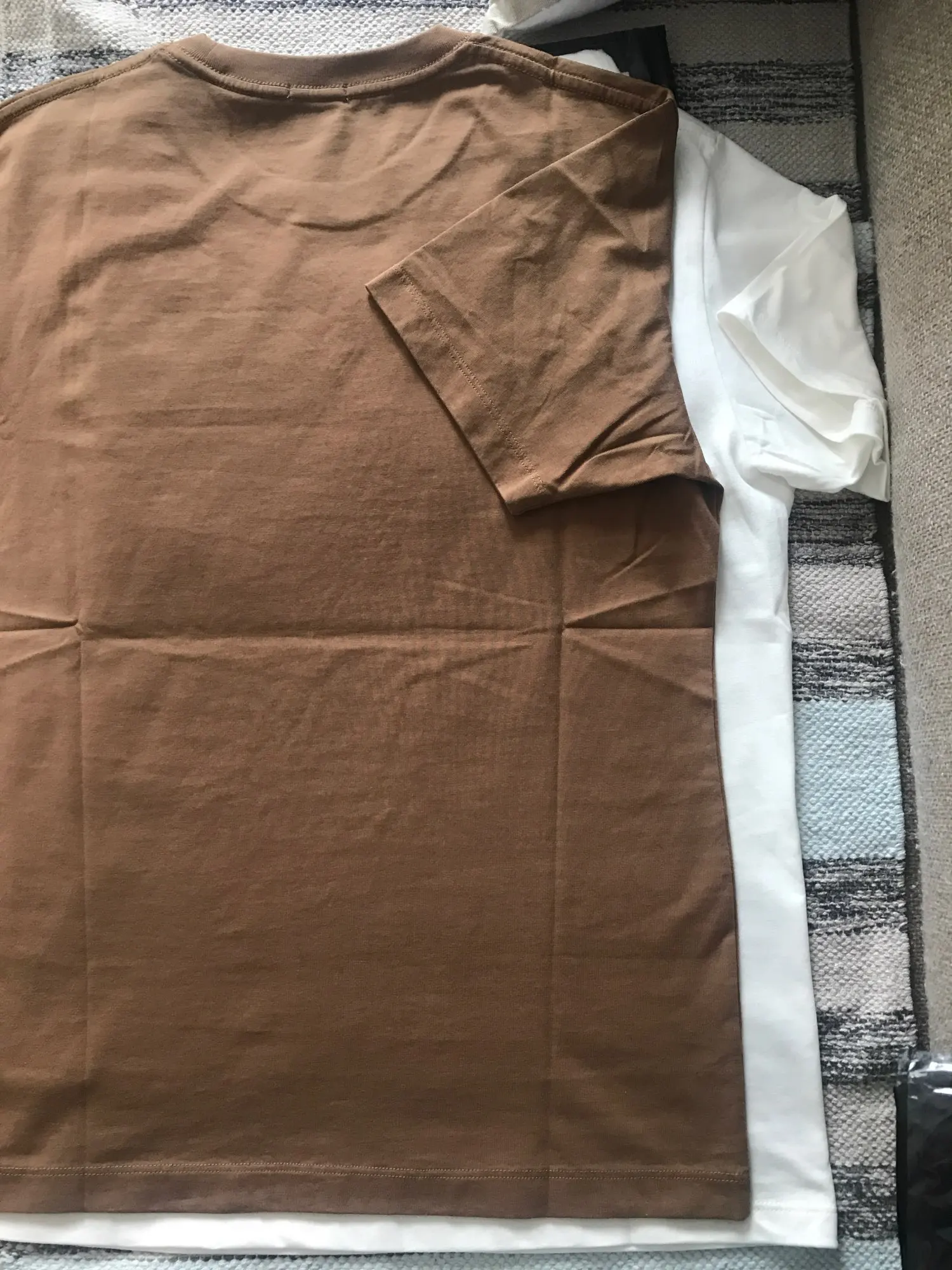 В черном цвете села плотнее нежели в бежевом. Брал на рост 175, 75 кг обхват груди до 100. Сидят футболки в целом чуть расслабленно. У продавца есть модель с коротким рукавом и нашивкой бренда, те сидят ближе к телу.