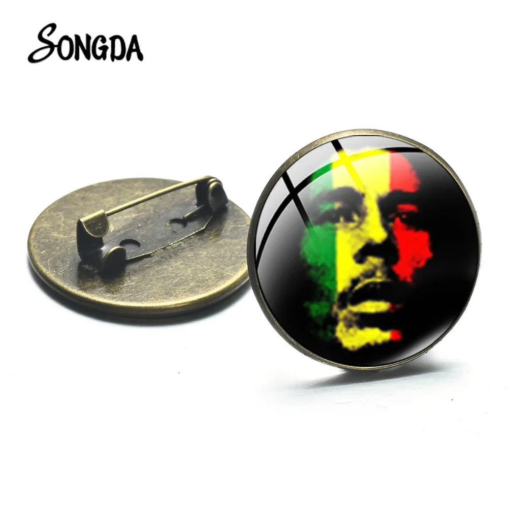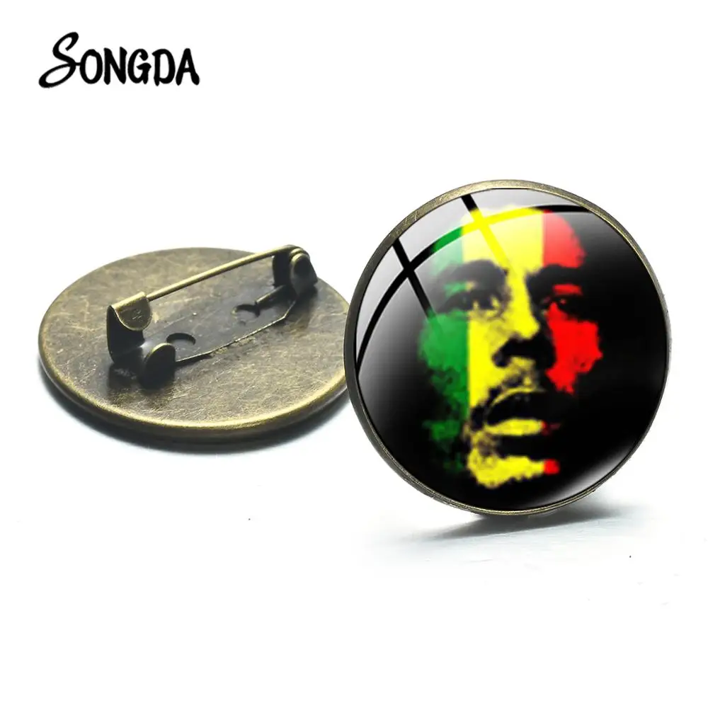 Бронзовая брошь в стиле регги певица Боб Марли стеклянный кабошон хип-хоп певица металлические булавки для рюкзака Сумки значки коллекция