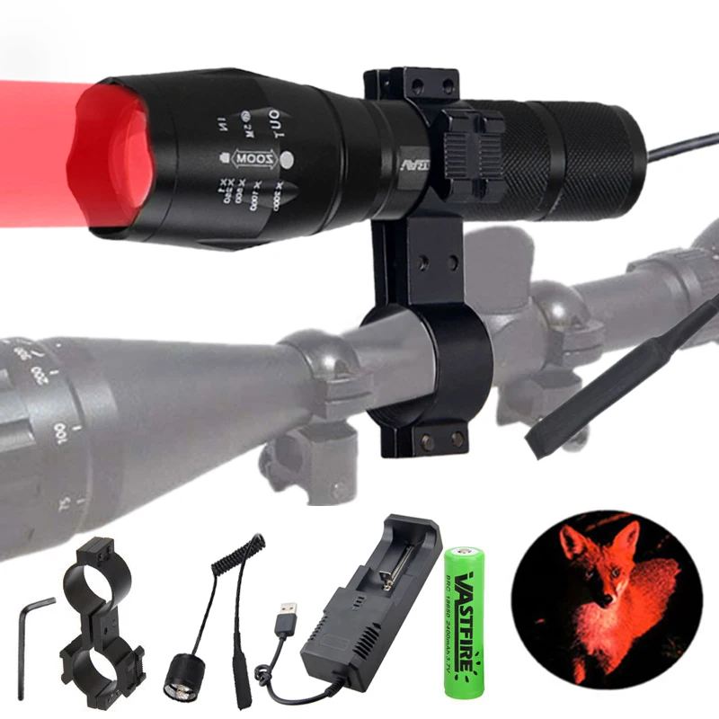 Фонарик для охоты A100, 1000 люмен, Регулируемый зеленыйкрасный фокус фонарь режим, крепление для прицела, переключатель, 18650, зарядное устройство, чехол