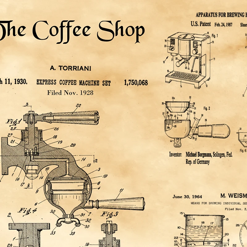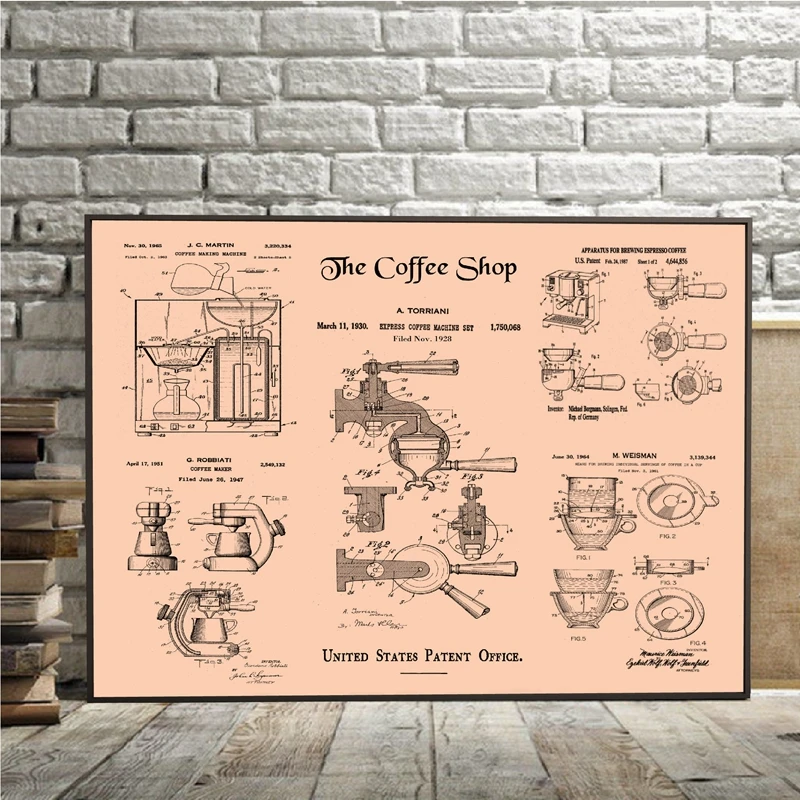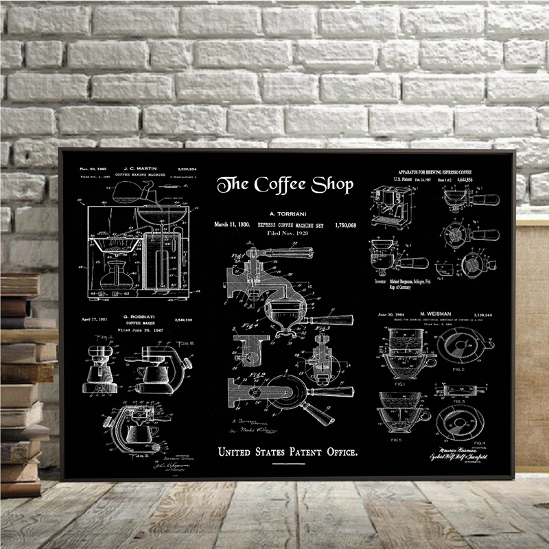 Запатентованный холст для кофе, Постер бариста, подарок, декор для кофейни, принты для кофе, подарки для влюбленных, винтажная художественная живопись, Настенная картина