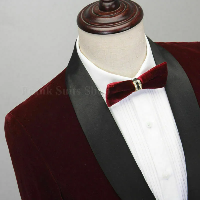 Мужской классический комплект из 3 вельветовых костюмов, стильный бордовый Свадебный костюм для жениха, приталенный смокинг, костюм для выпускного вечера