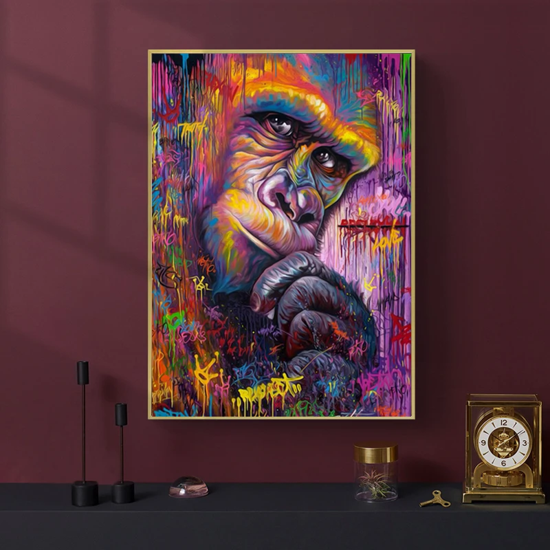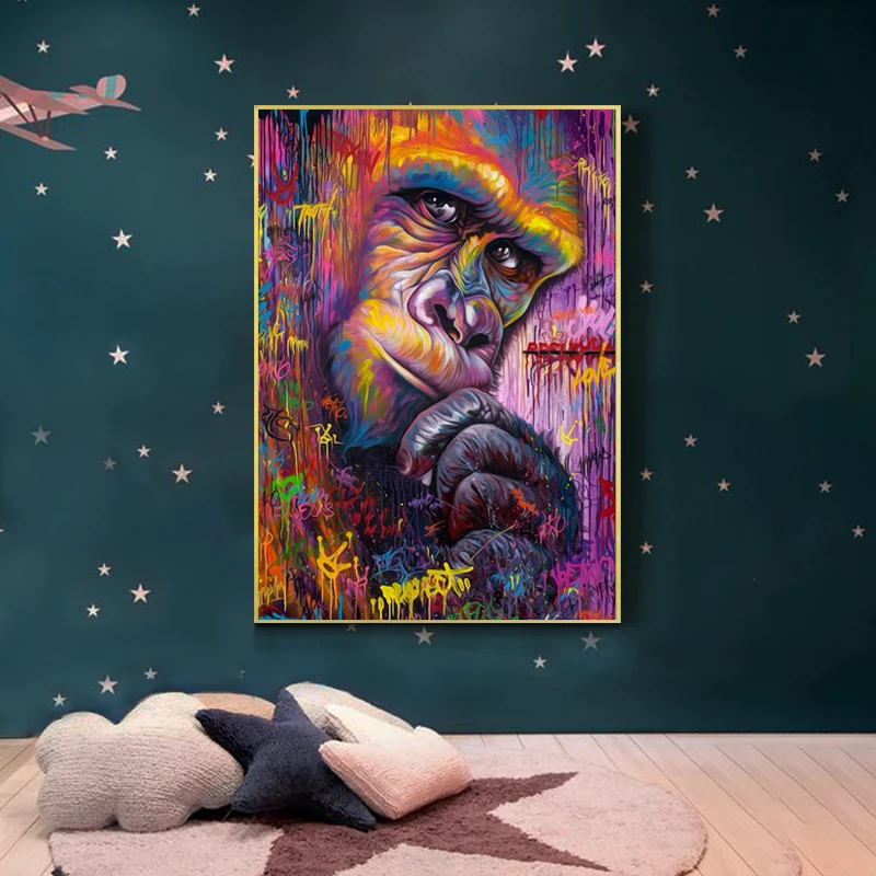 Абстрактная картина на стену разноцветные обезьянки с изображением животных гориллы, Картина на холсте, для гостиной
