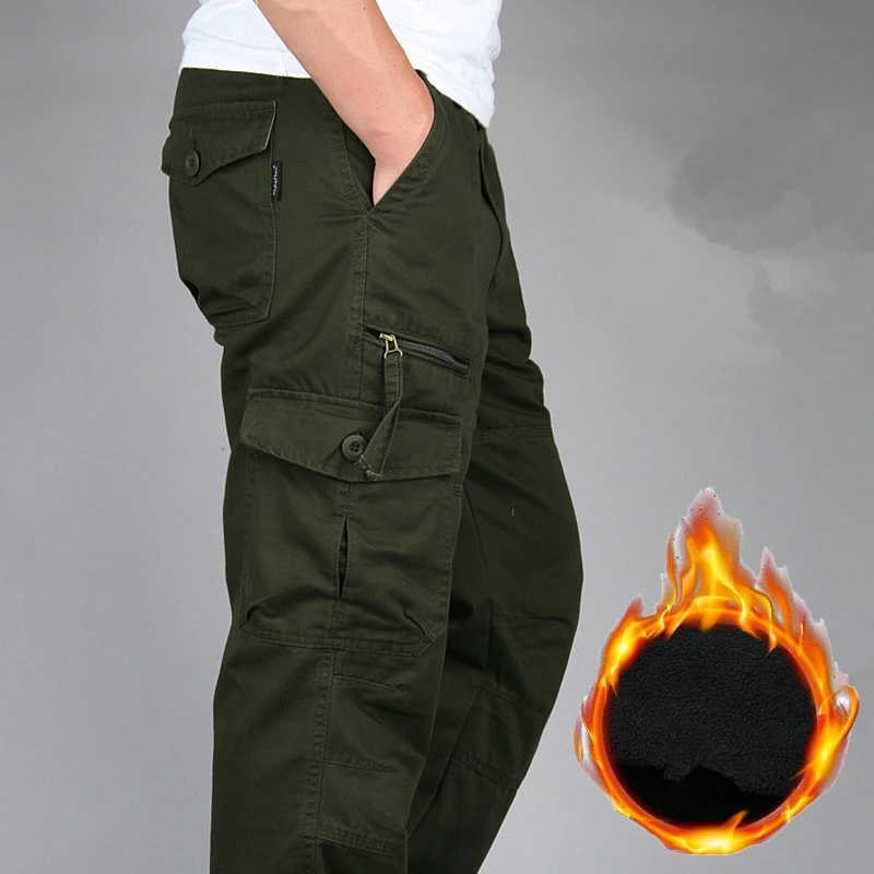 Мужские теплые камуфляжные брюки-карго, зимние двухслойные Плотные хлопковые брюки, прямые Военные боевые мешковатые флисовые брюки, комбинезон