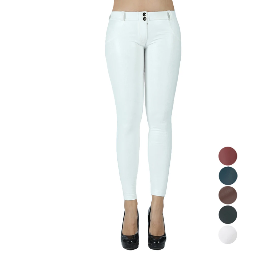 Леггинсы женские кожаные, со средней талией, теплые, мягкие, белые