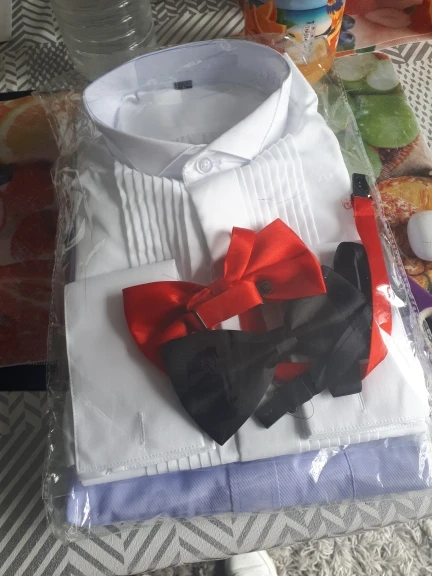 Очень долго прибыл, но Рубашка отличная, 2 черных бабочки с, один красный и один черный