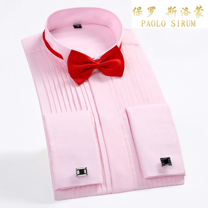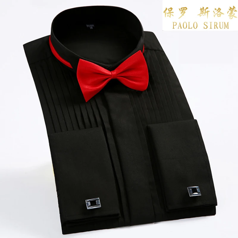 Белая мужская рубашка для смокинга, Классические французские запонки, длинный рукав, Свадебная вечеринка, мужской 6xl, размера плюс