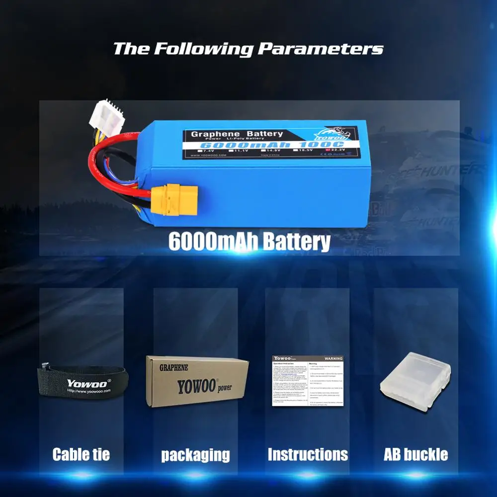 6S1P 22,2 V 6000mah 100C:155 мм x 48 мм x 54 мм, 901 г