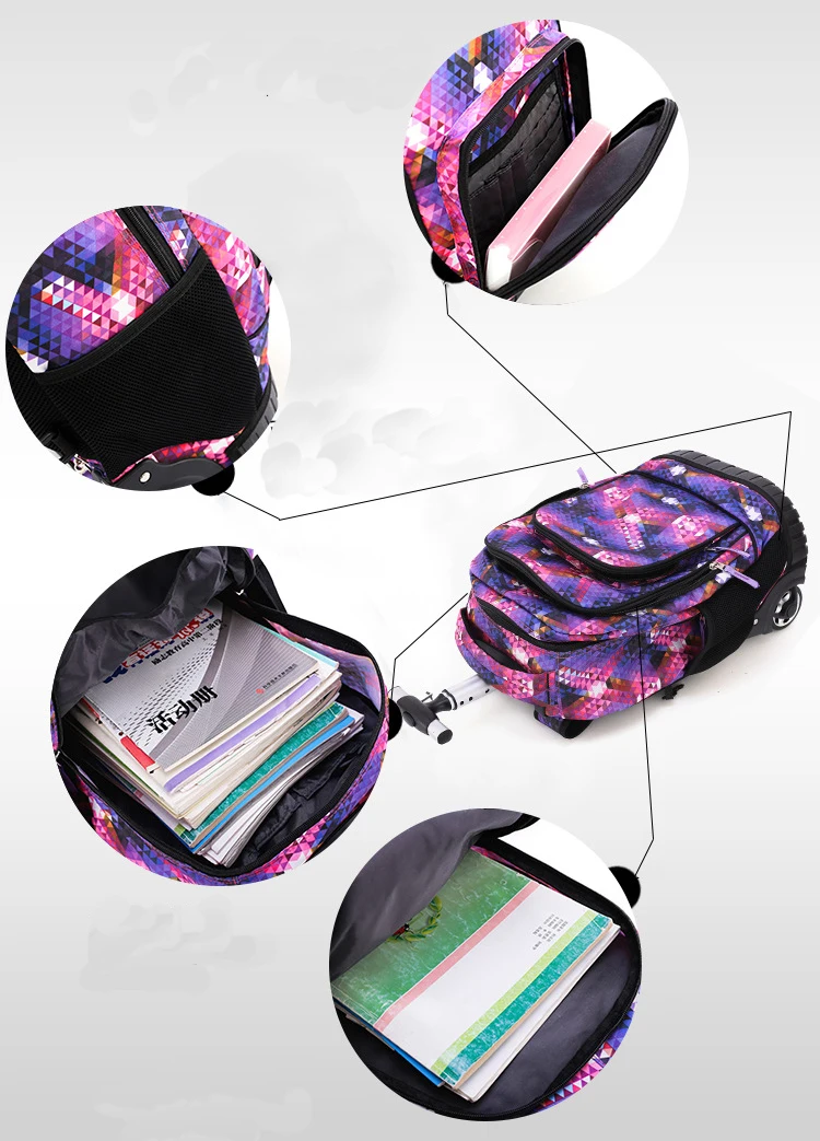 Детские рюкзаки на колесиках для мальчиков и девочек, школьные ранцы на колесиках для подростков, 18 дюймов