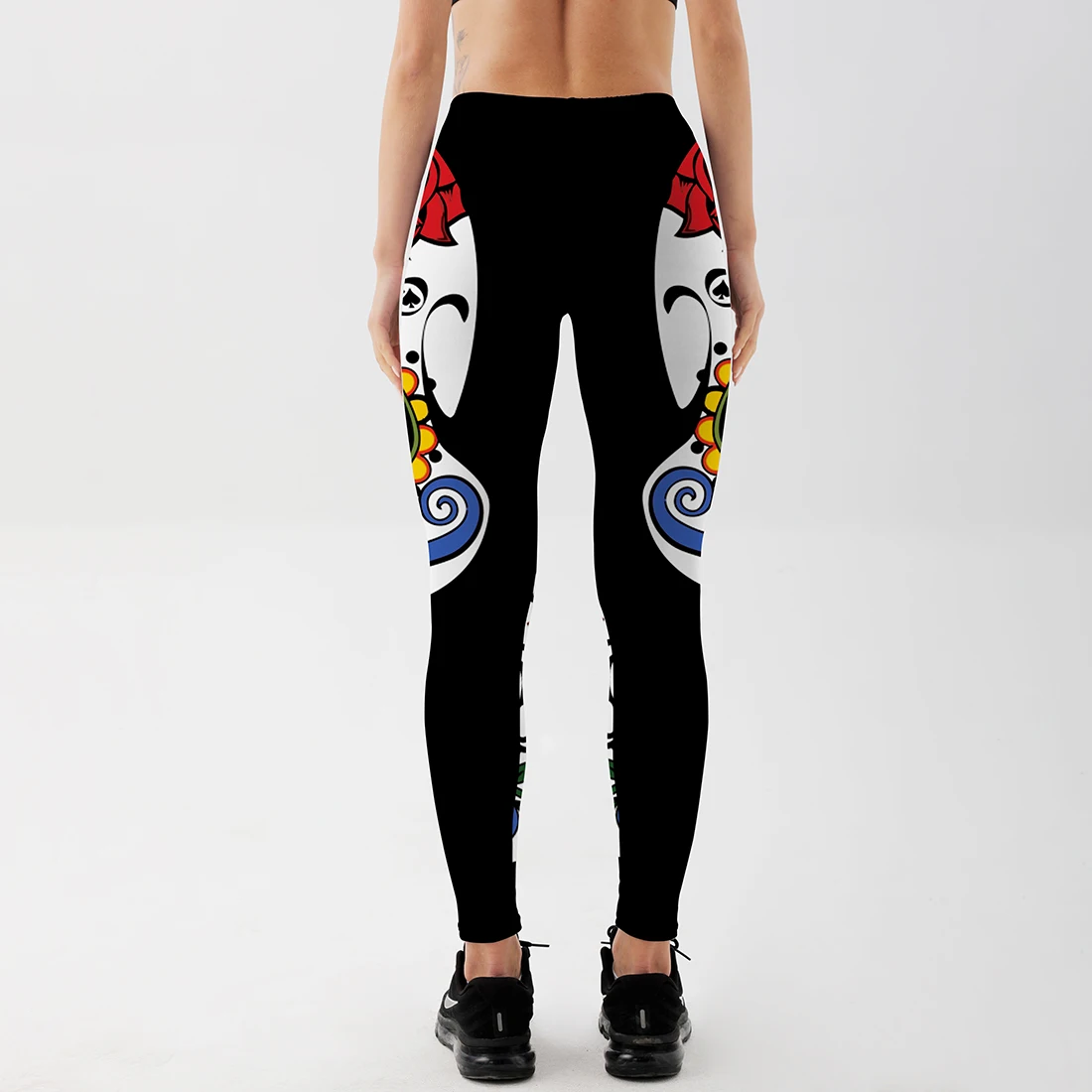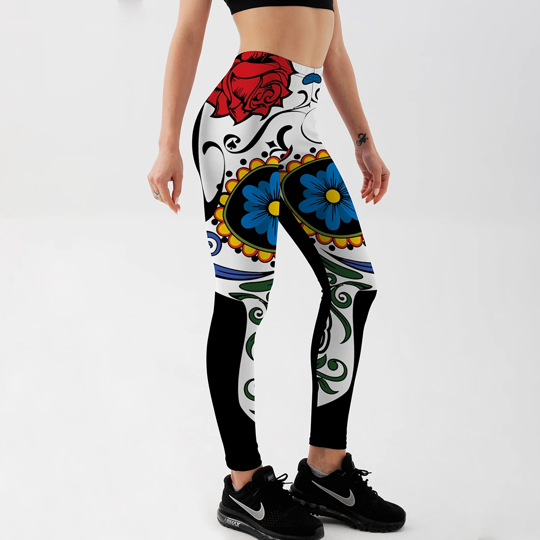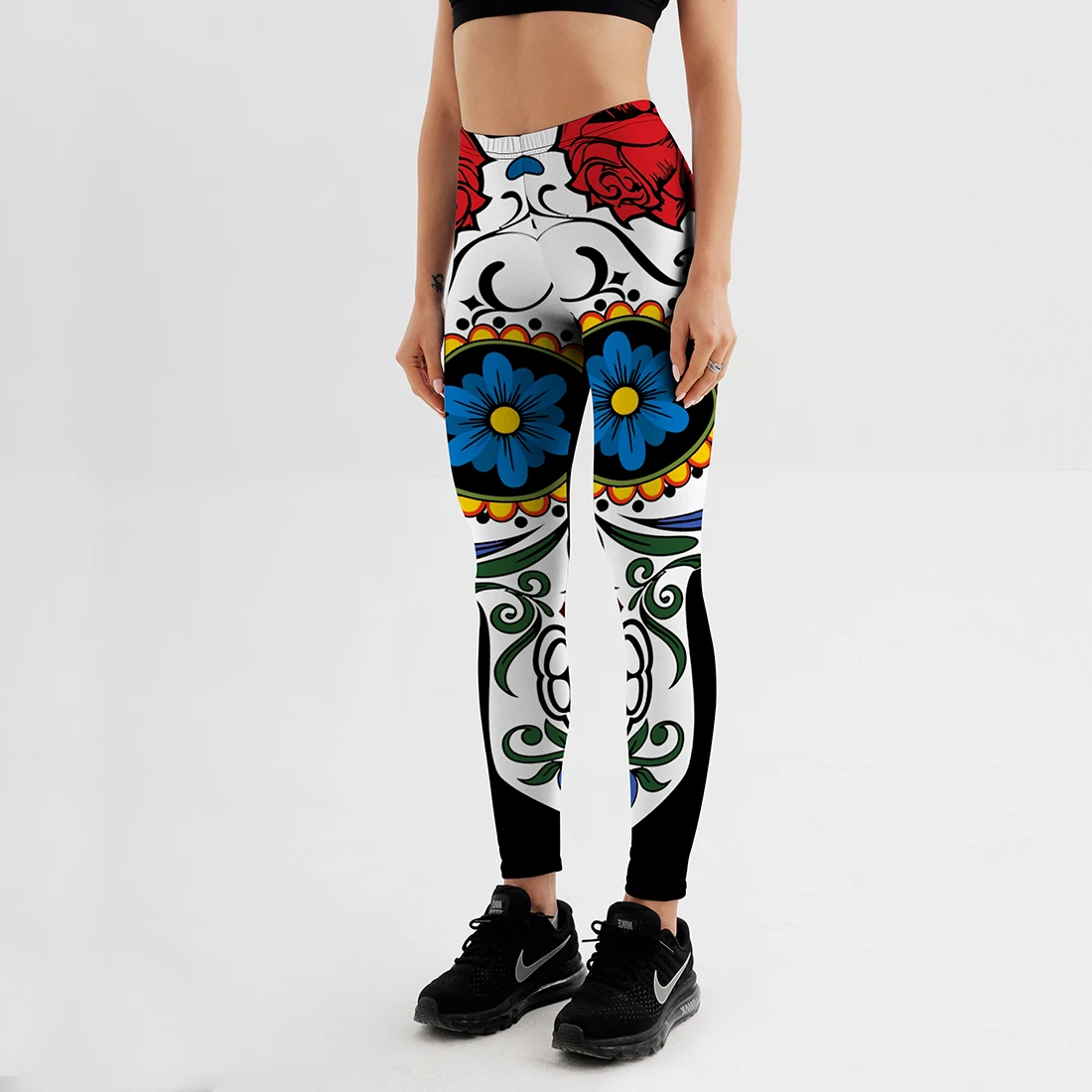 Леггинсы женские, с высокой талией, для фитнеса, с принтом черепа и...