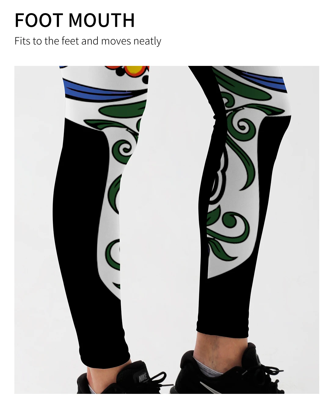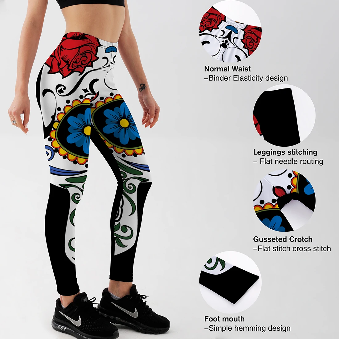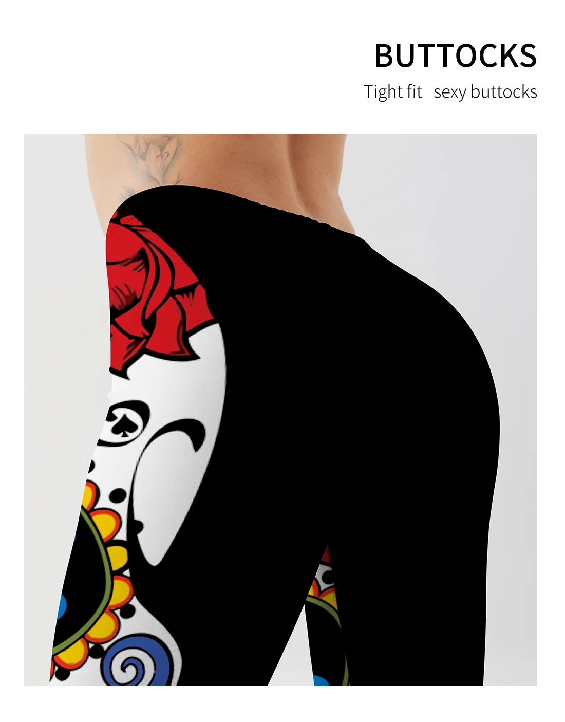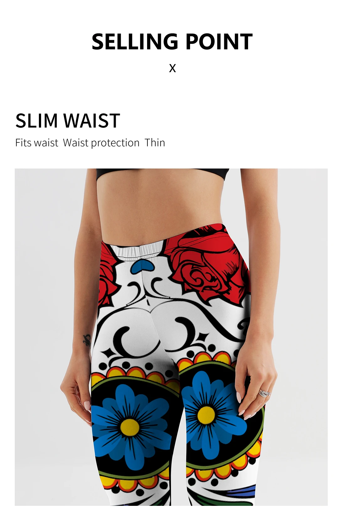 Леггинсы женские, с высокой талией, для фитнеса, с принтом черепа и...