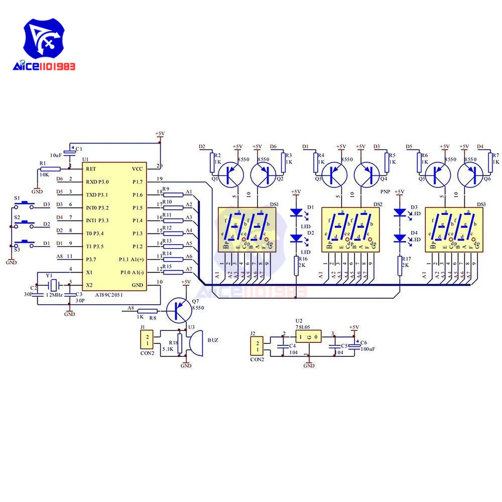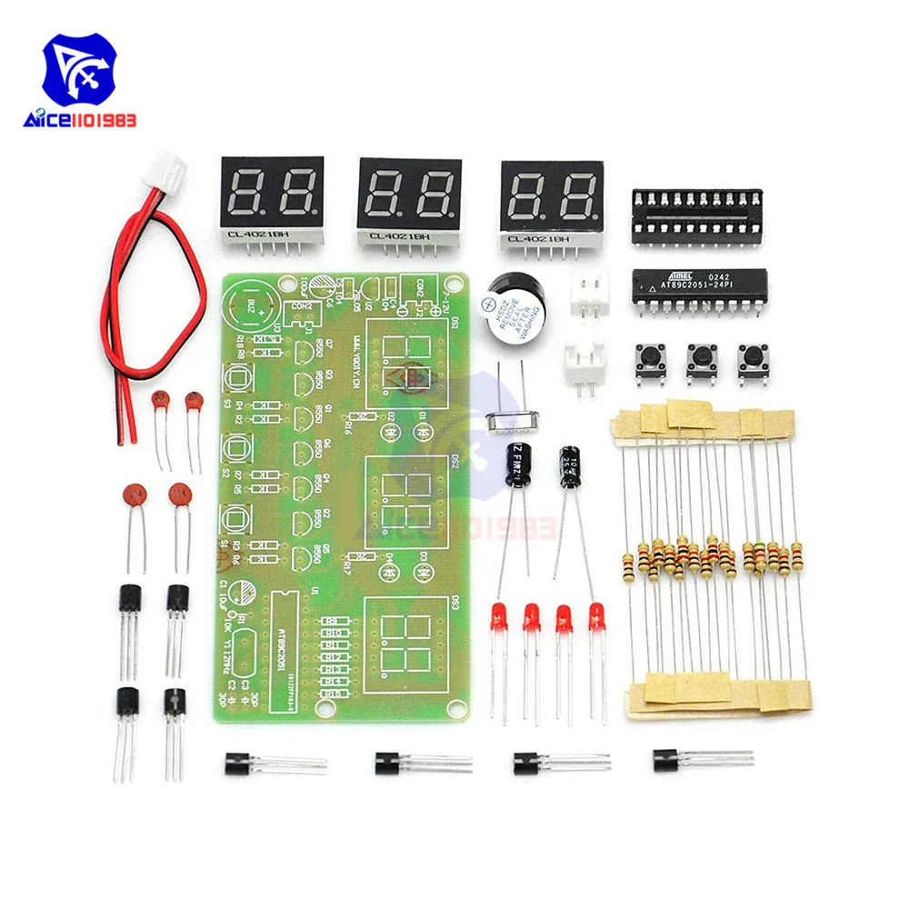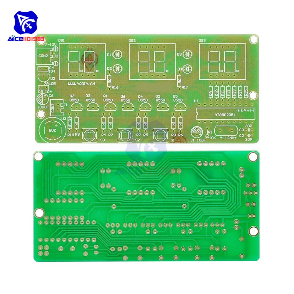 Электронные часы DIY Kit, 6 бит, чип C51 AT89C2051, электронный будильник FR-4 PCB с зуммером, Обучающий набор для Arduino