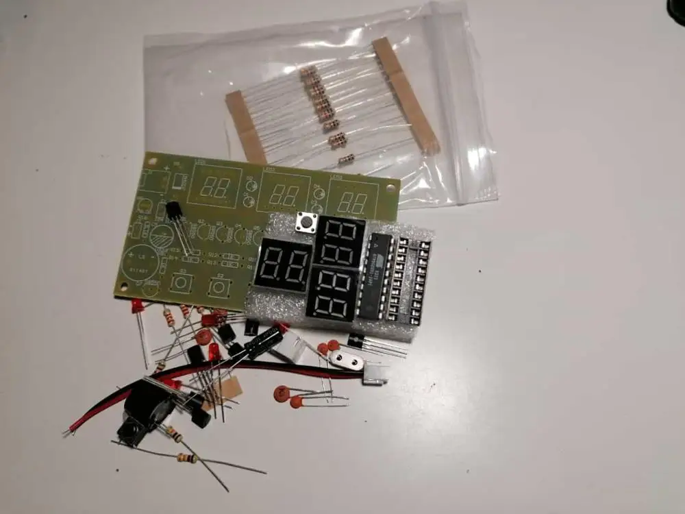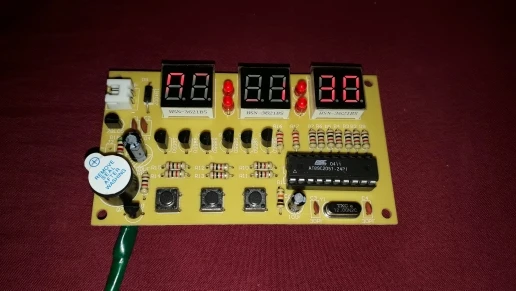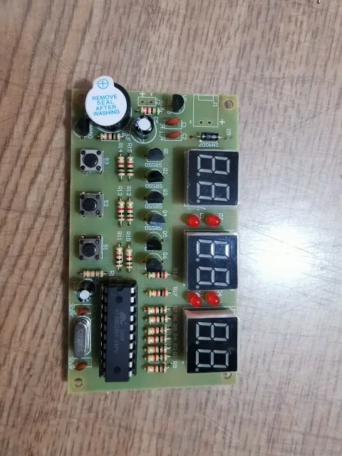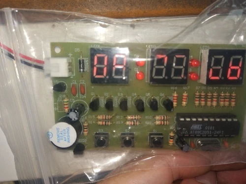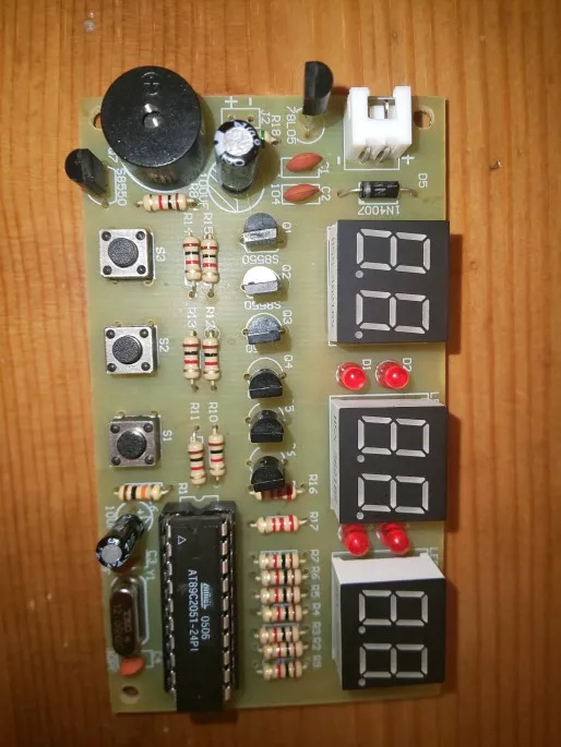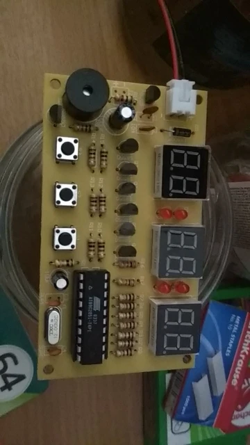 Черные и красные провода к источнику питания заменены! Номера конденсаторов на печатной плате не соответствуют числам в спецификации и схеме. 2 конденсатора рядом с кристаллом должны быть 30pF! Работает сейчас.