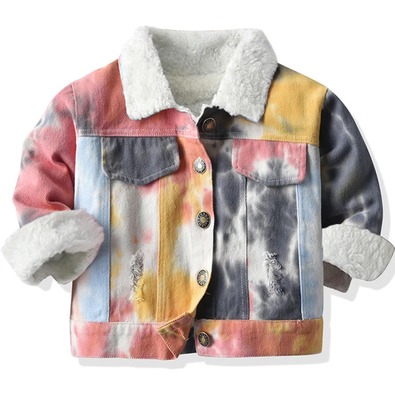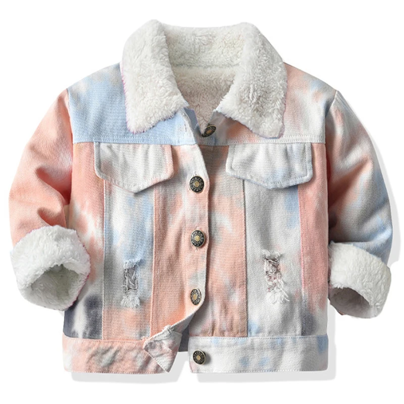 Куртка джинсовая для мальчиков и девочек, Осень-зима 2021, разноцветная, теплая