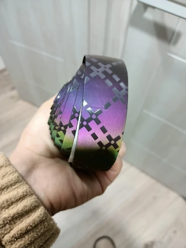 выглядит потрясающе. на солнце будет переливаться,а вот от машинных фар будет сверкать. в туманную погоду лента просто серая. не сильно мягкая. в работе не использовала, дополню позже