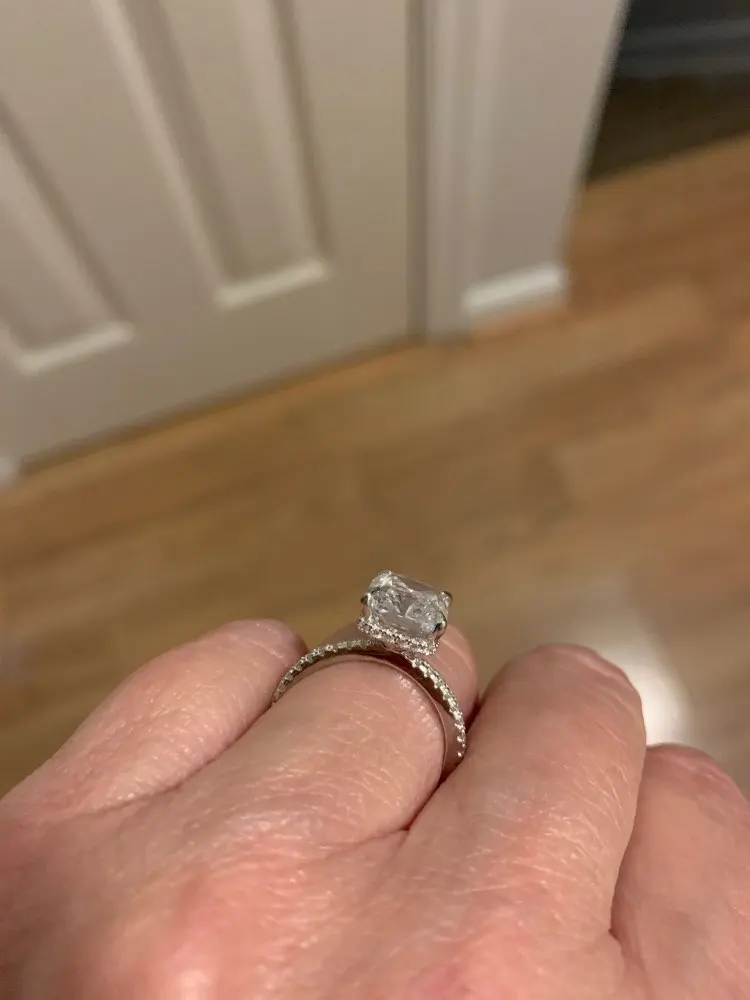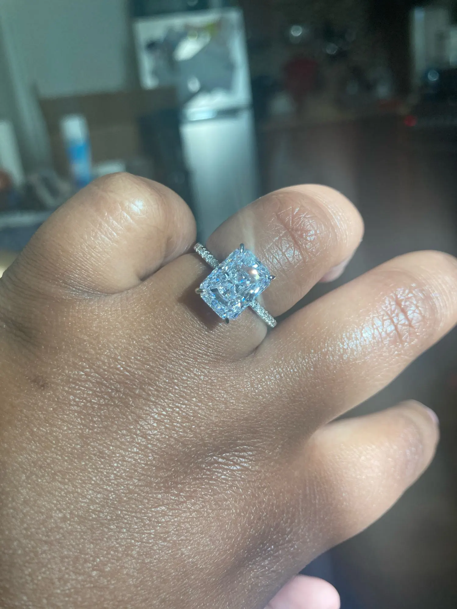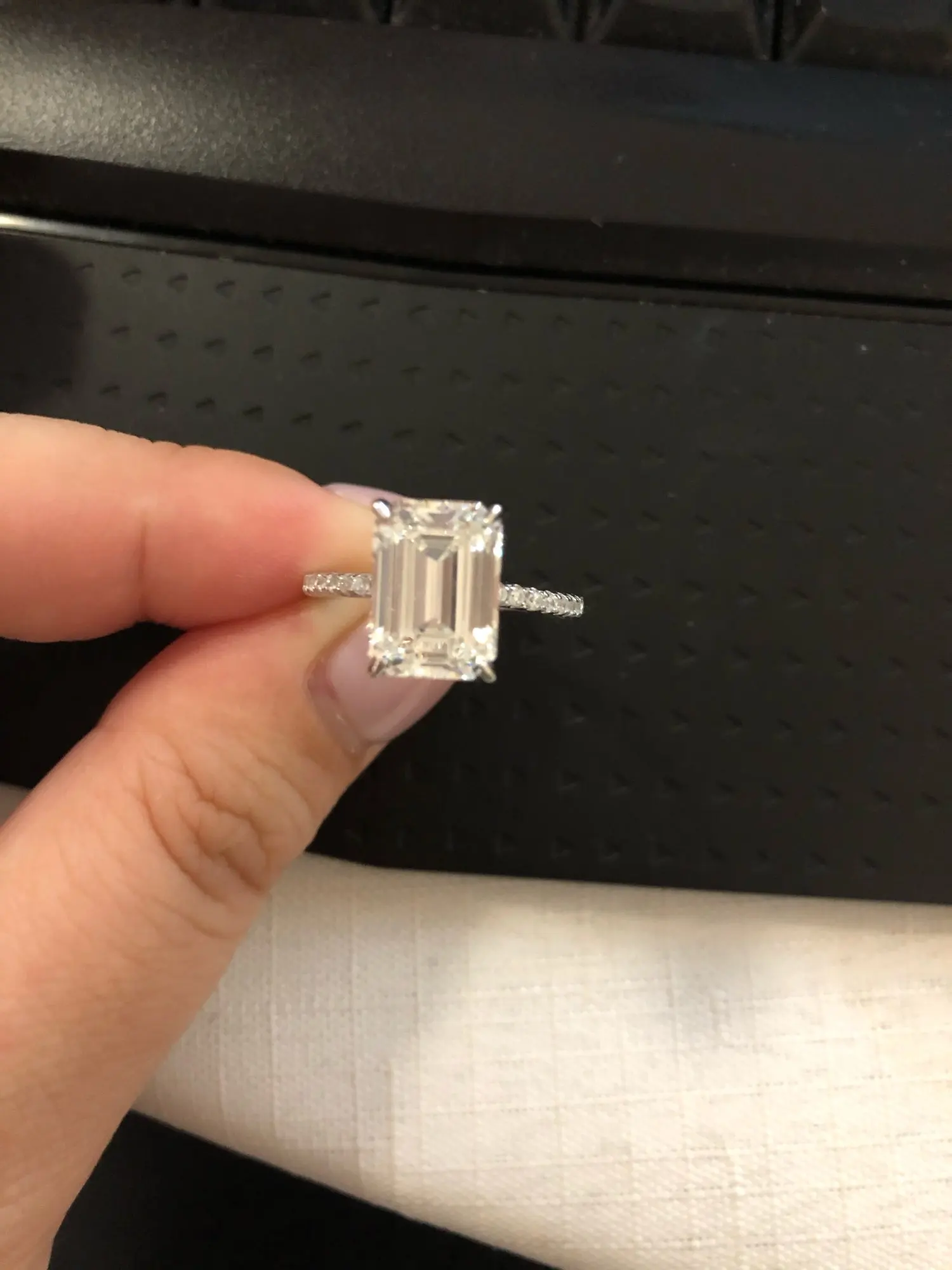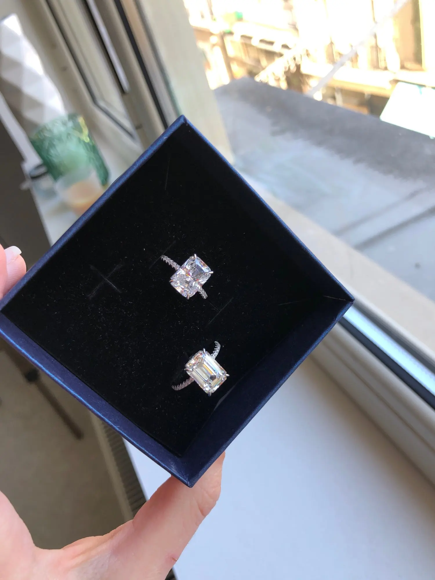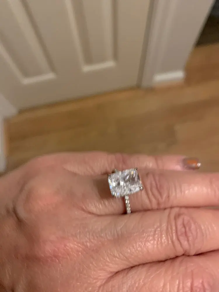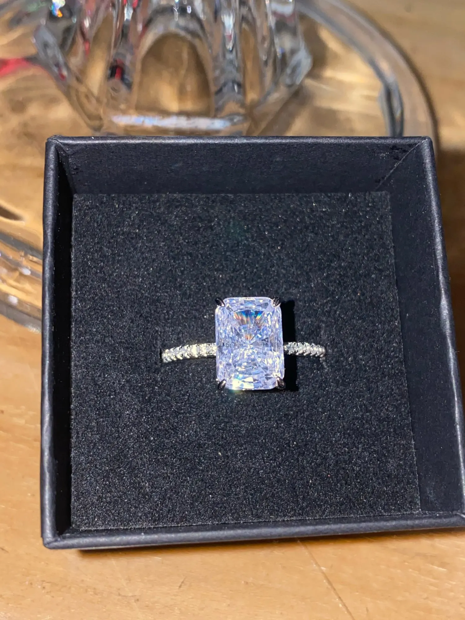 Выглядит потрясающе, моя жена была шокирована! На нем есть штамп из стерлингового серебра 925 пробы, и алмаз точно выглядит моиссанитом (не проверял тест на алмазы), отличное качество!