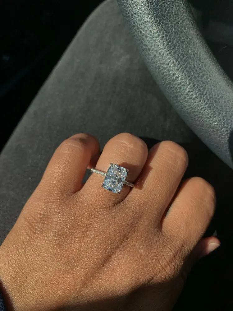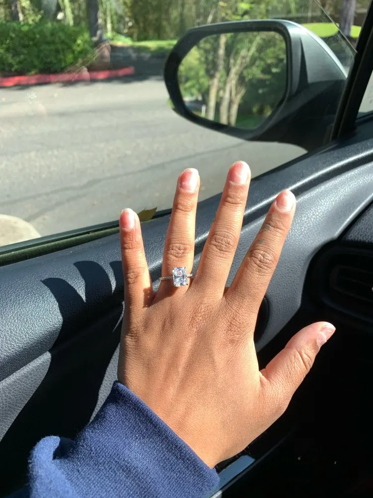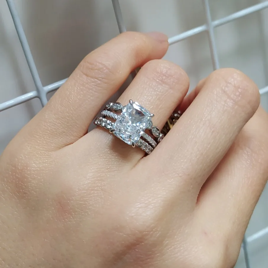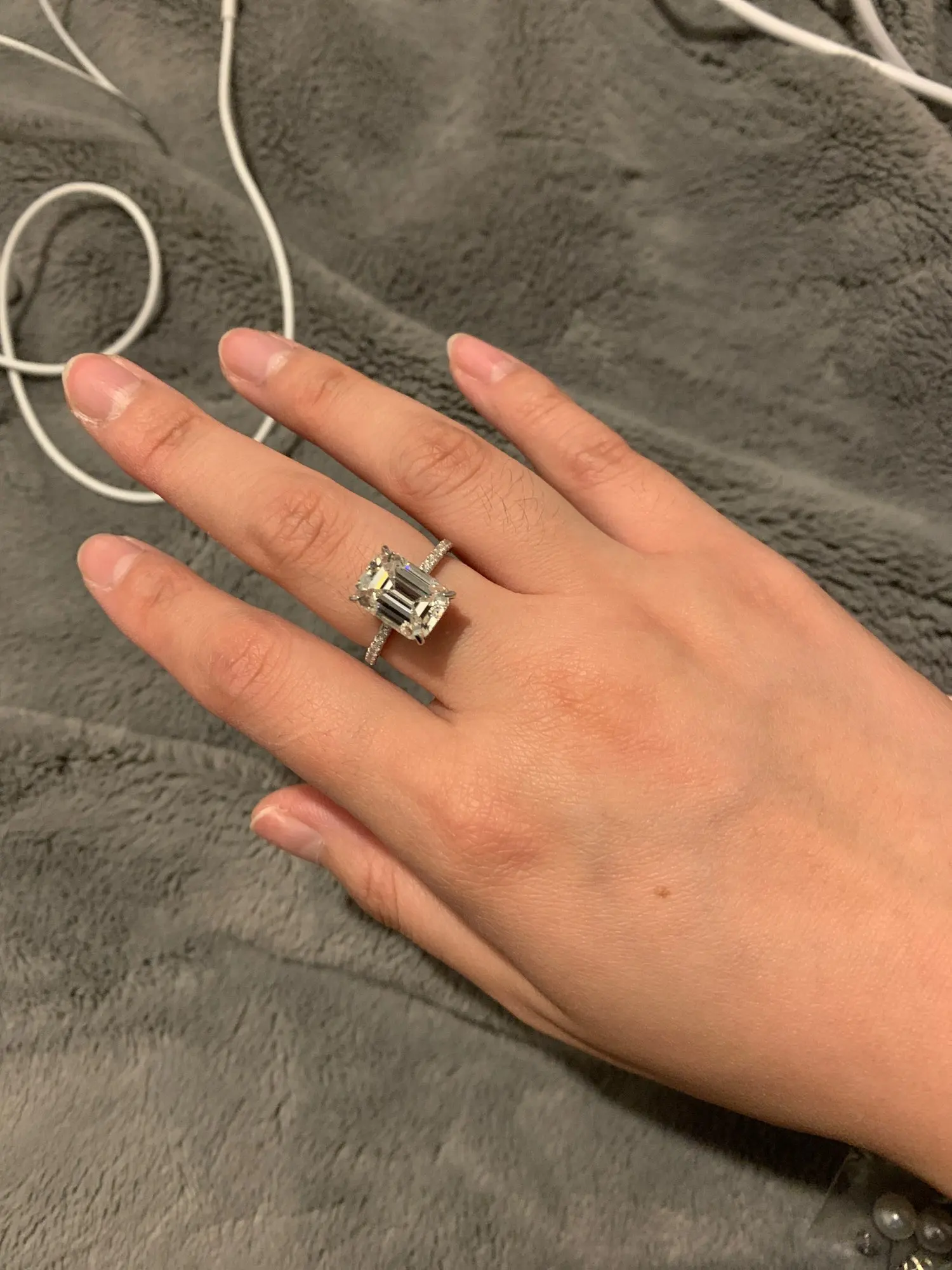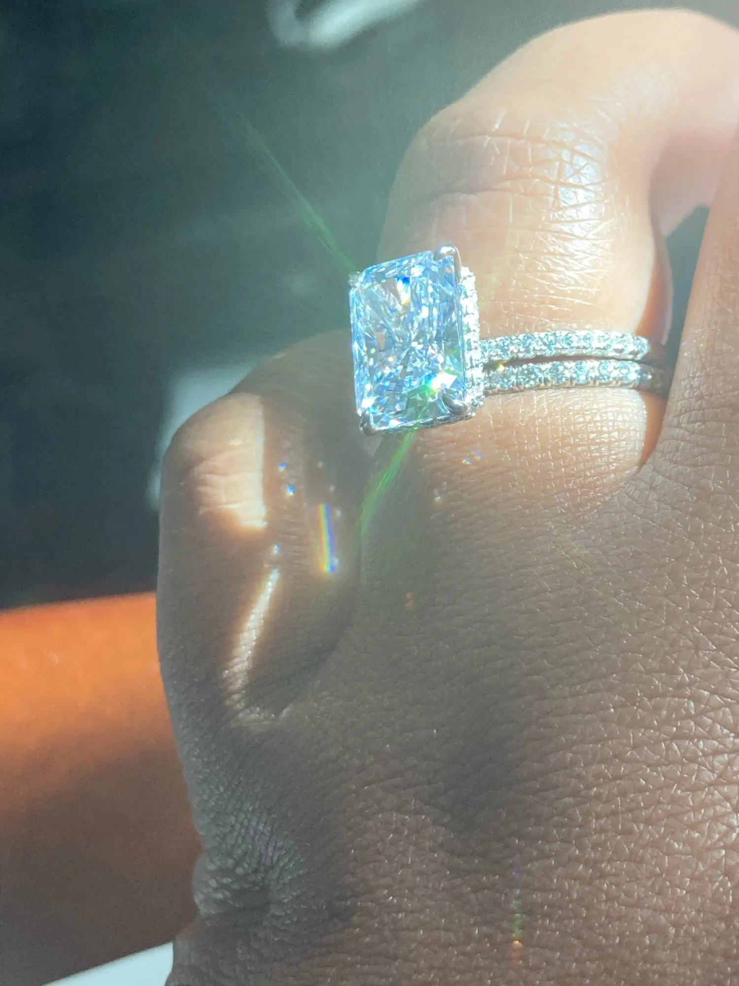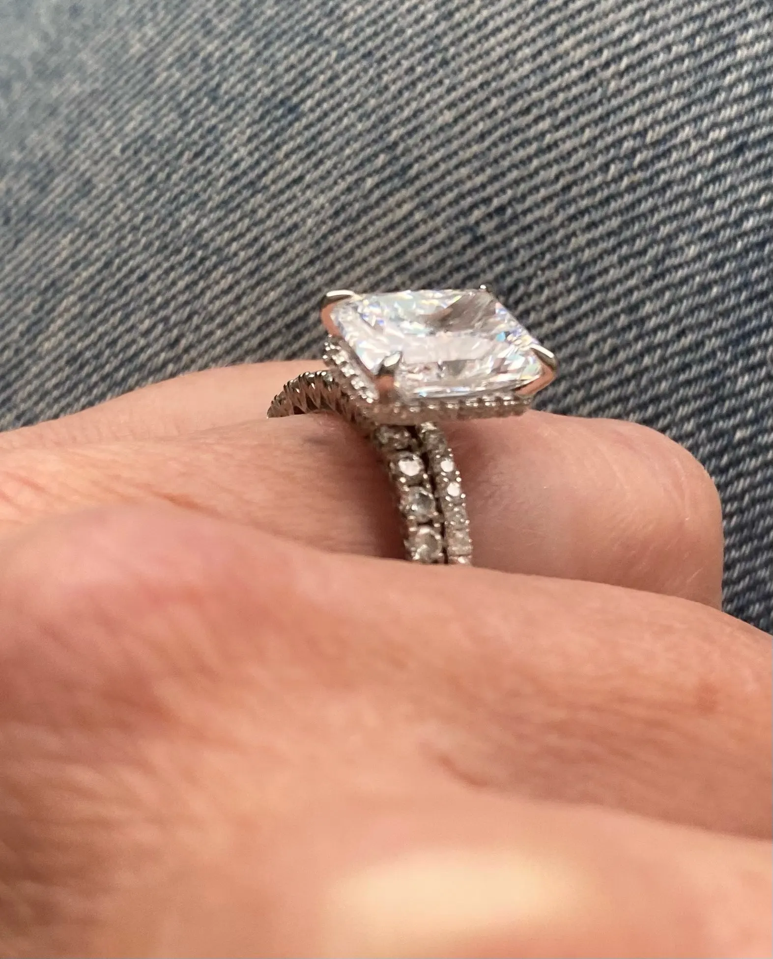 Выглядит потрясающе, моя жена была шокирована! На нем есть штамп из стерлингового серебра 925 пробы, и алмаз точно выглядит моиссанитом (не проверял тест на алмазы), отличное качество!