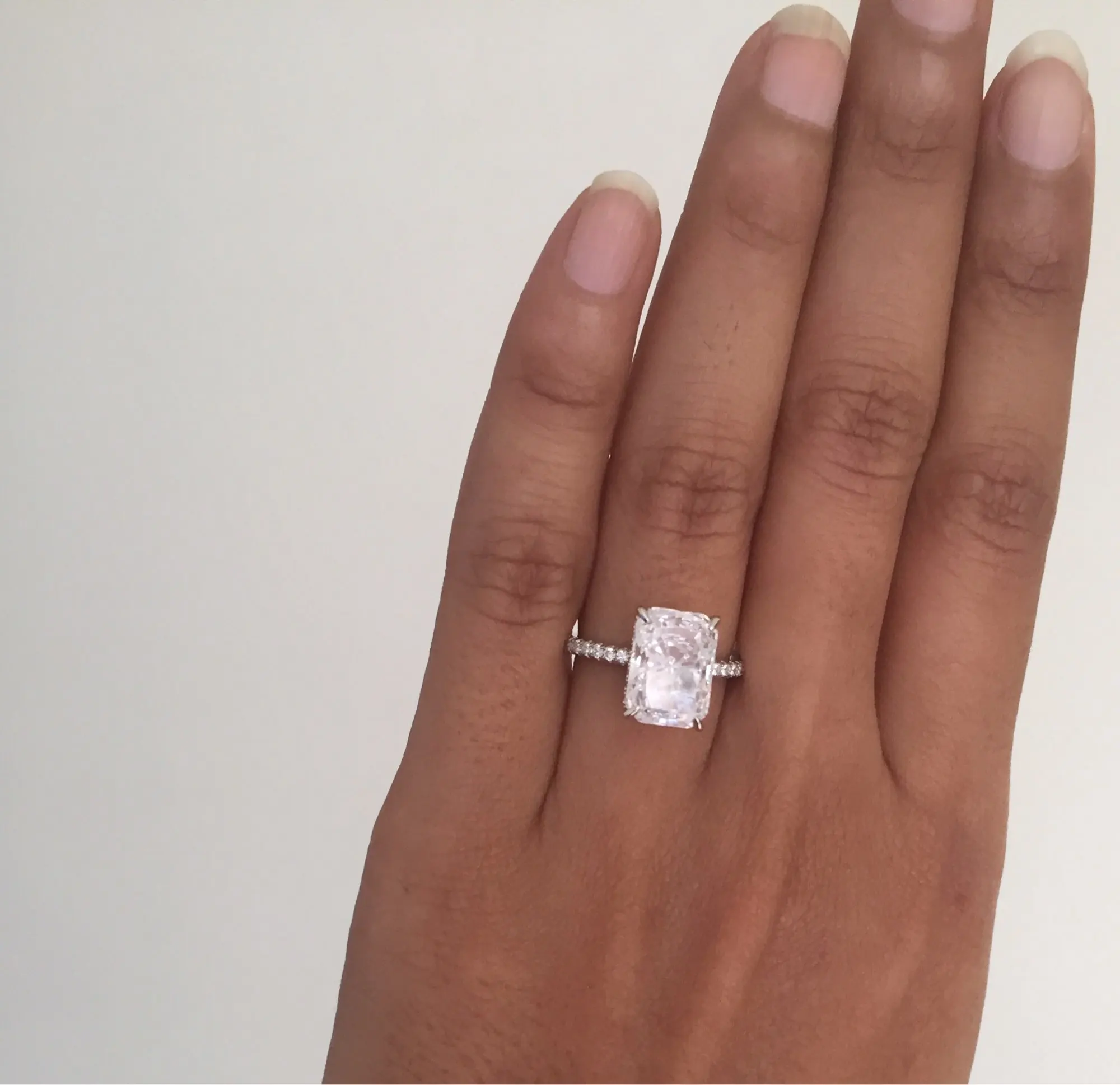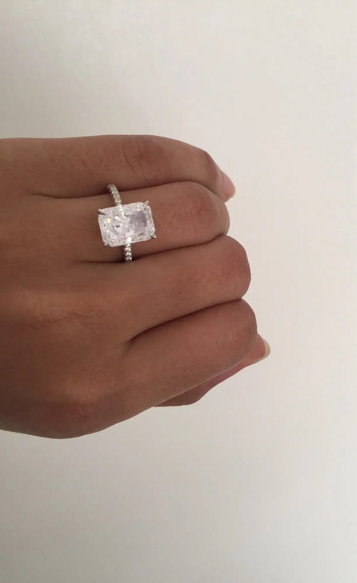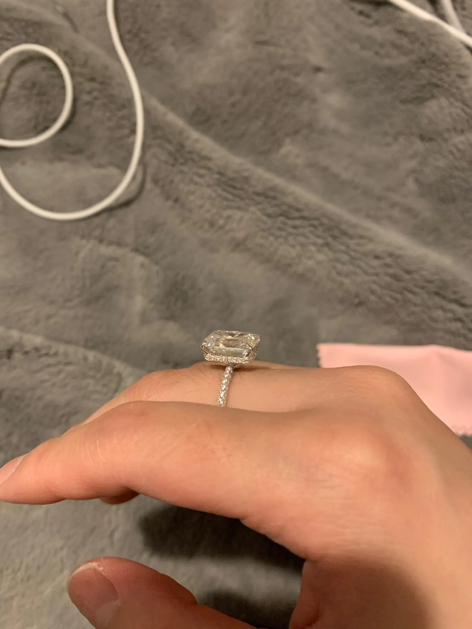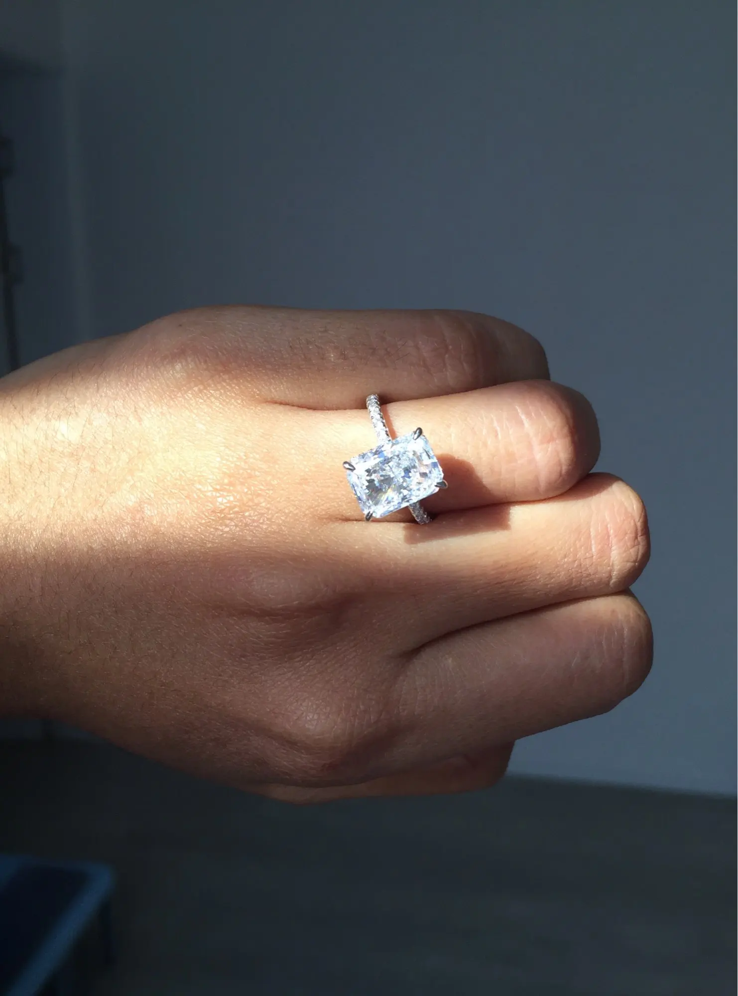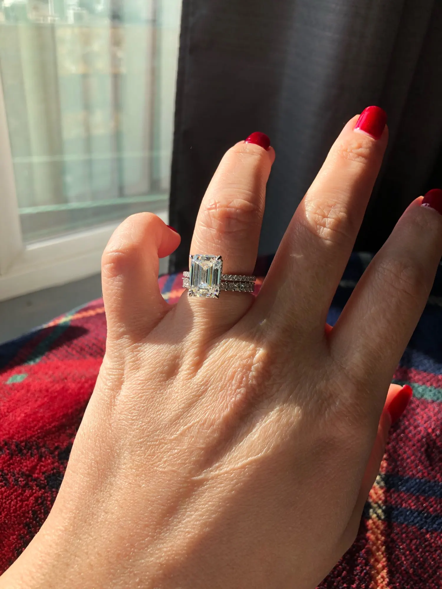Выглядит потрясающе, моя жена была шокирована! На нем есть штамп из стерлингового серебра 925 пробы, и алмаз точно выглядит моиссанитом (не проверял тест на алмазы), отличное качество!