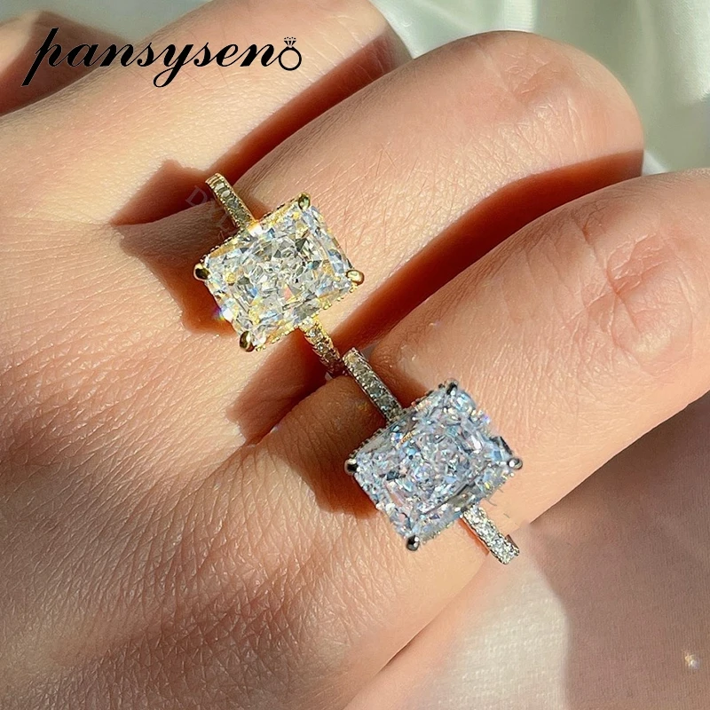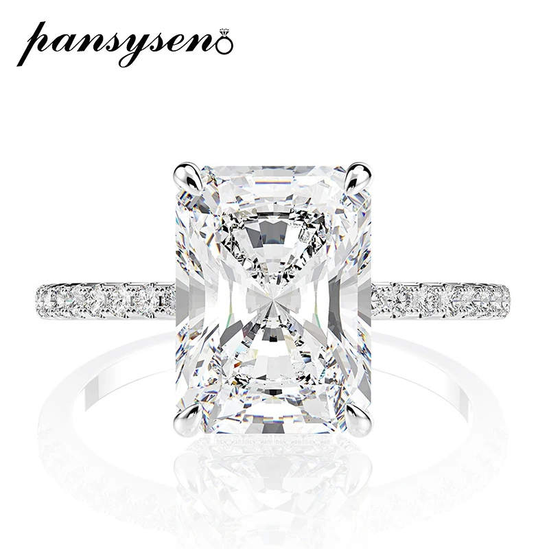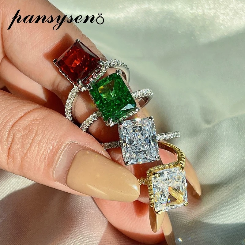 Женское Обручальное Кольцо PANSYSEN, из серебра 100% пробы с изумрудной огранкой и бриллиантом, с муассанитом, 925