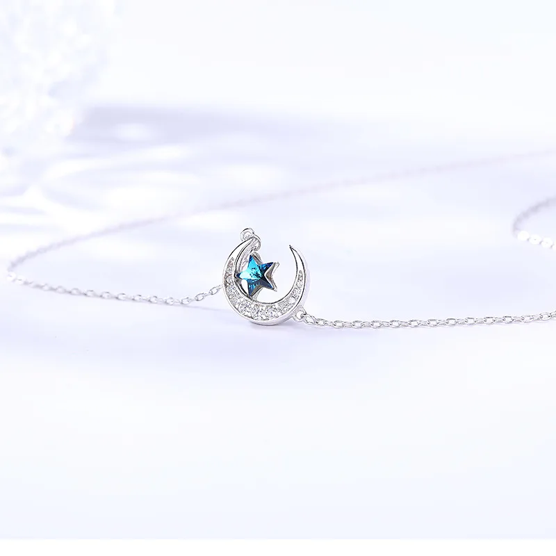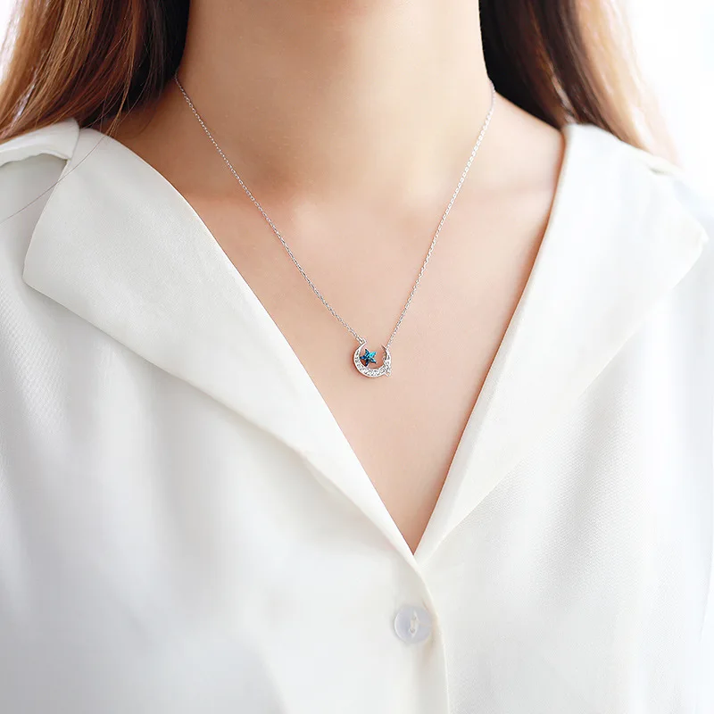 Простое Ожерелье с кулоном в виде звезды и Луны из циркония для женщин ювелирные изделия для свадебной вечеринки Подарки на день Святого Валентина