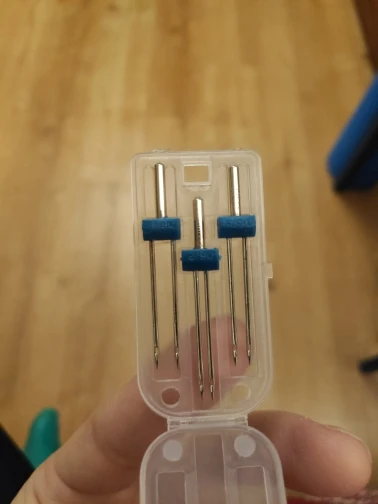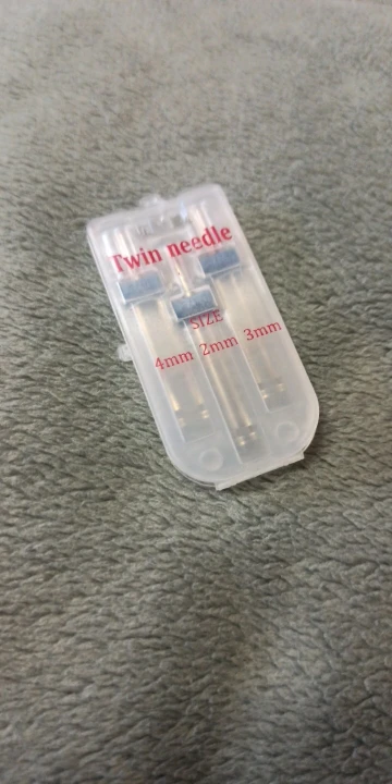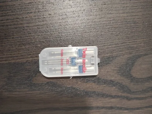 Продавец отправил все очень быстро. Посылка до Рязани дошла за 24 дня (правда объединили 3 мои посылки вместе, может поэтому так быстро дошло). С продавцом не общалась, не было необходимости. Иглы подошли для моей машинки Janome MX77. Спасибо продавцу. Шить иглами попробовала. Результат порадовал, особенно вид сзади. Вторая ниточка у меня белая, может на фото не очень хорошо видно. Если нужно прошить 2 параллельные строчки на расстоянии 2, 3 и 4 мм друг от друга, то эти иголочки вам очень пригодятся. По поводу качества: одна из иголок немного длиннее остальных. На работе это вроде не сказалось. Но из-за нее не закрывается коробочка, в которой они лежат и коробка имеет выгнутую форму (последнее фото). Попробовала использовать эти иглы совместно с лапкой для защипов. Что-то пока защипы не получились. Уж и натяжение нити меняла... Может кто сталкивался с такой бедой и подскажет решение?
