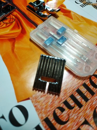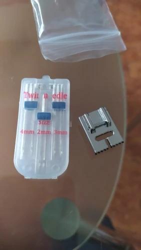 Отправка, доставка долгая. Иглы 90 размер, качество игл на 4 с минусом, есть шероховатости, не очень острые. Проверить в работе двойные иглы пока не могу. Лапка хорошая, к Janome подошла, но в работе большой разницы с обычной, родной, лапкой не вижу.