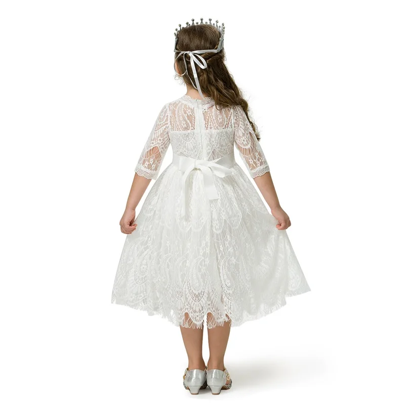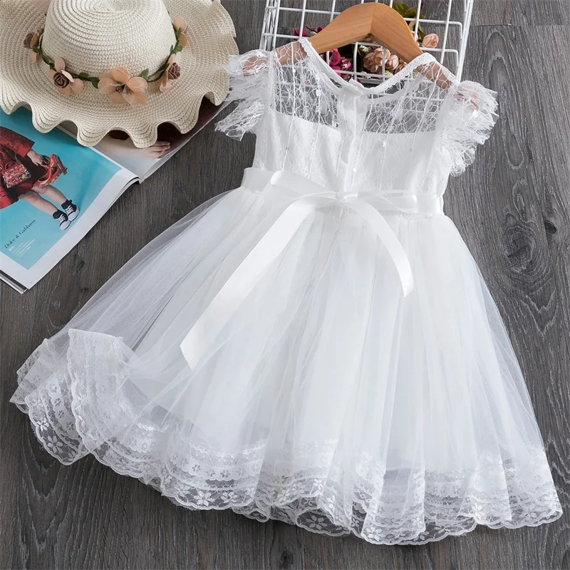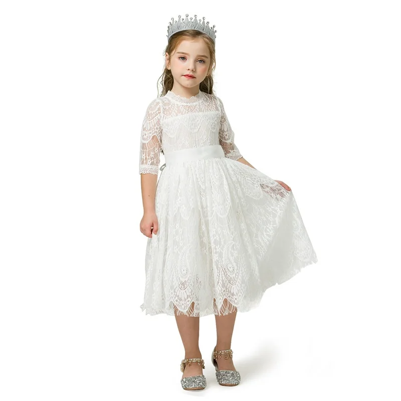 Детские платья для девочек, элегантное белое кружевное вечернее платье принцессы для 3, 4, 5, 6, 7, 8 лет, детская свадебная одежда, вечернее платье, платье
