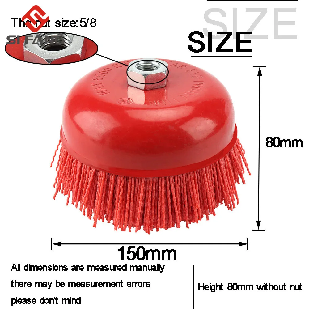 Стакан 150 мм, нейлоновая абразивная щетка, ворс, полимерная абразивная чаша, нейлоновая щетка, 6-дюймовый угловой шлифовальный станок