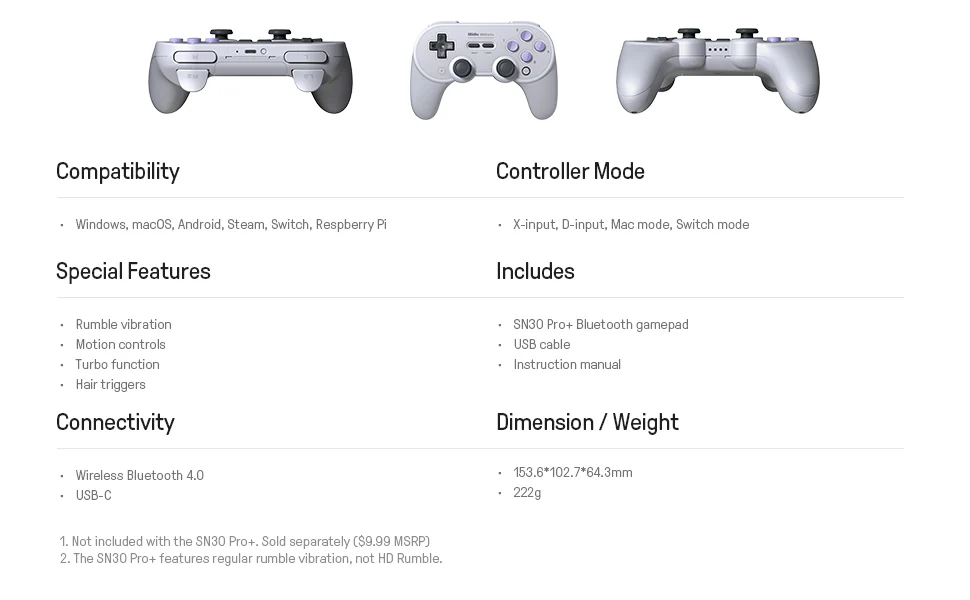 Беспроводной геймпад 8bitdo SN30 Pro Plus с Bluetooth контроллером джойстик для Nintendo Switch macOS Android