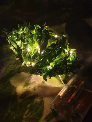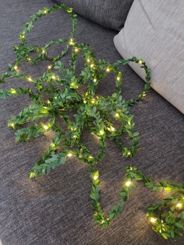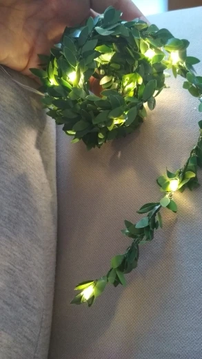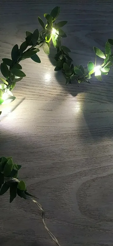 Красивая гирлянда плюща, но все в порядке. Но, честно говоря, очень красиво, для украшения и стола зимой, так как летом идеально, он работает с 3 батареями АА. Чтобы сделать его более объемным, я могу купить секунду, когда заплету и в соответствии с сезоном добавлю красные ягоды, другие листья, цветы и т. Д. Я рекомендую его мне, я получил 5 штук. Потому что он хорошего качества и хорошо освещает. Стекло листьев очень красивое, оно очень натуральное и не пластиковое. Я рекомендую этот магазин очень серьезно.
