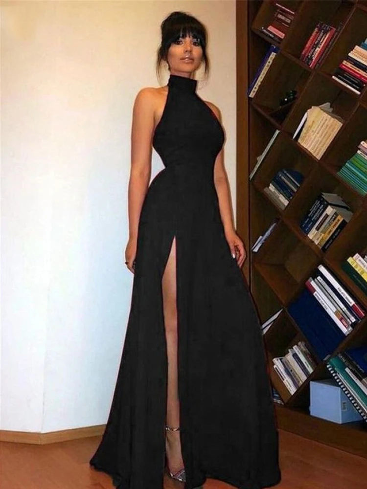 Платье Lorie женское атласное с высоким воротом, длинное простое черное вечернее платье-Русалка с разрезом и размера плюс для выпускного вечера