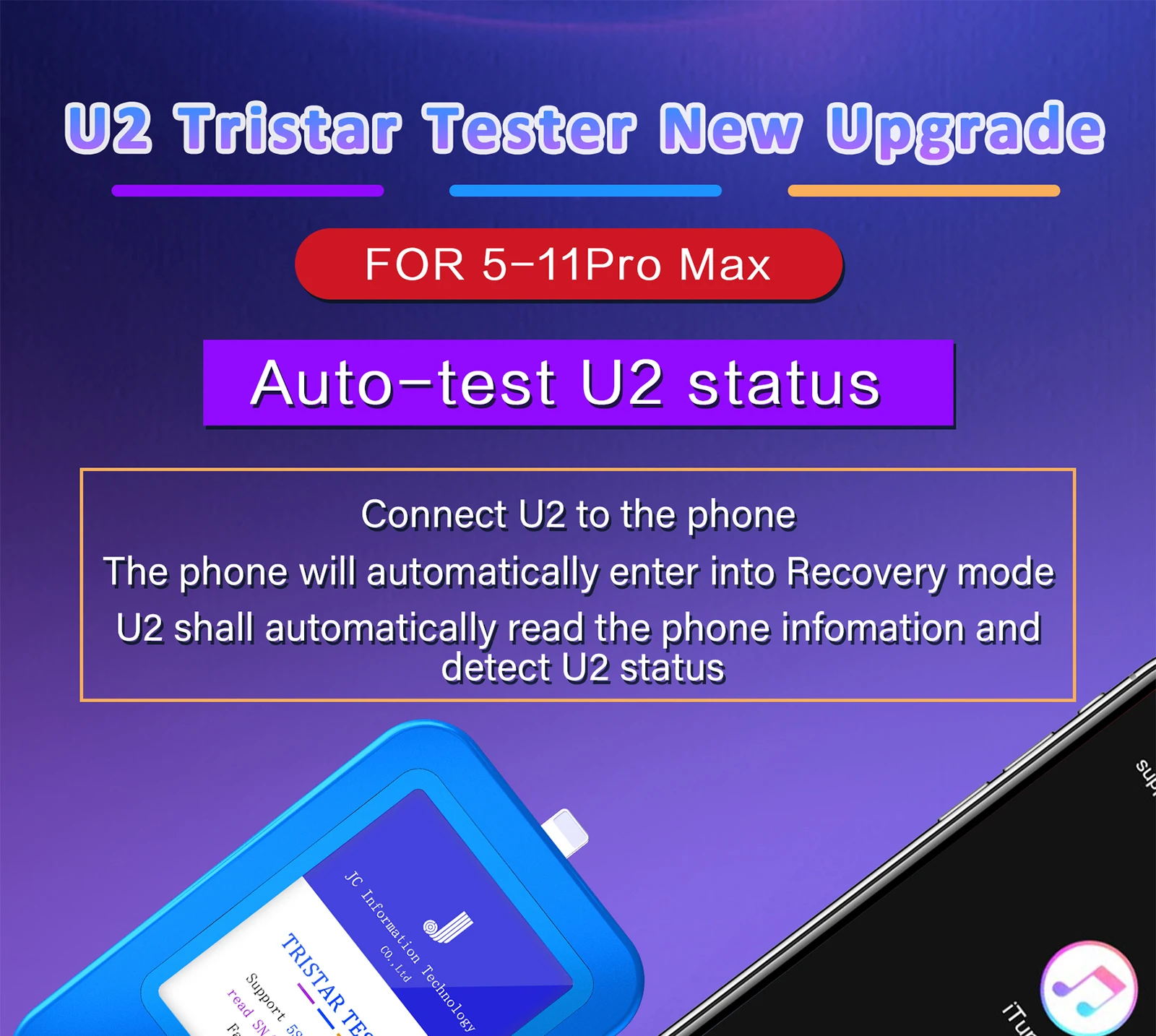 Чип JC U2 Tristar Tester U2, быстрое обнаружение неисправностей для iPhone 5-11Pro Max, автоматическое тестирование состояния U2, детектор серийного номера, считыватель