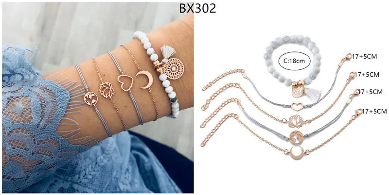 Многослойный женский браслет-цепочка, многослойный браслет в стиле бохо с разноцветными листьями, надписями, картами, геометрическими кристаллами, бесконечностью, пентаграммой, 31 стиль