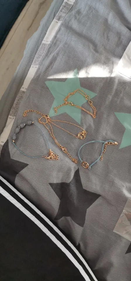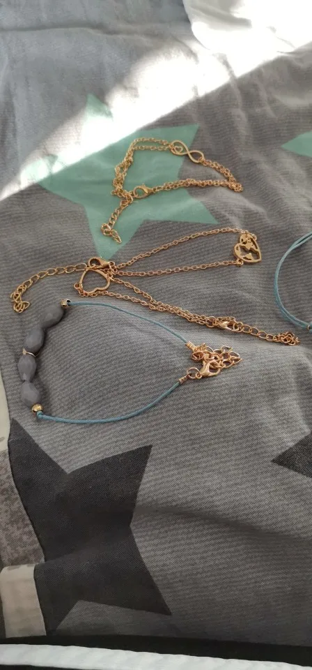 Милые браслеты. Честно, купив один набор трудно удержаться от покупки остальных. Есть один минус, те, что застегиваются цепочкой, слишком длинные. Застегивая на самое первое звено, браслет болтался по всей руке, хотя запястье у меня самое обычное. Но эта проблема легко решилась подвязыванием браслета