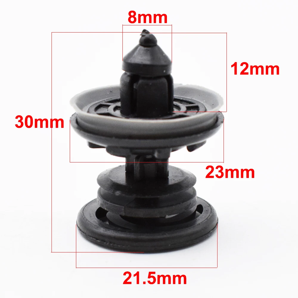 Особенности:Эти заклепки изготовлены из пластикового материала, подходит для использования в автомобиле.Хороший автомобильный аксессуар, обычно используется для установки боковых юбок, бамперов и другой отделки.Их можно использовать на автобусах, поездах, самолетах, грузовиках, автомобилях.Тип нажима, изготовлены из пластикового материала, подходят для отверстия диаметром 8 мм.