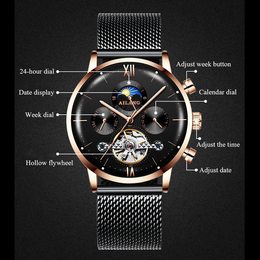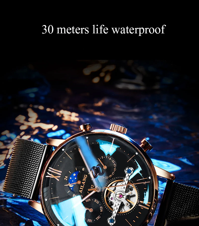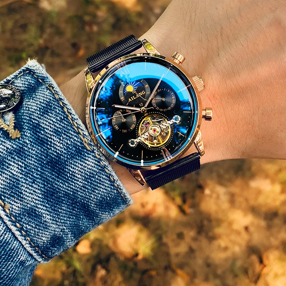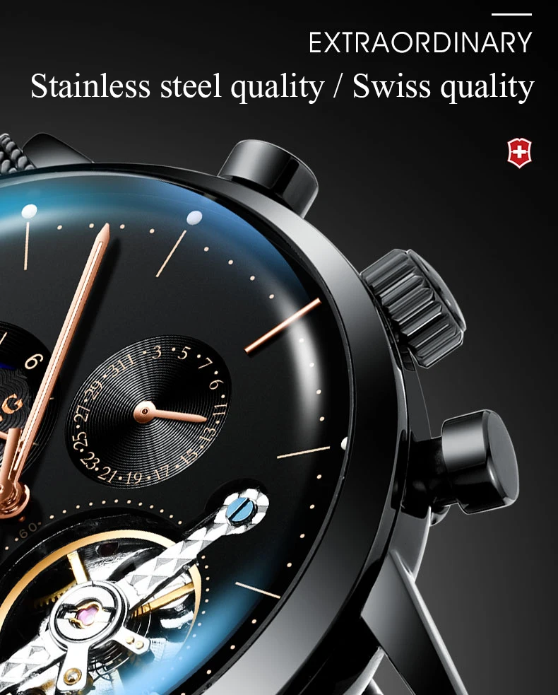 Часы мужские автоматические с турбийоном, швейцарские, механические