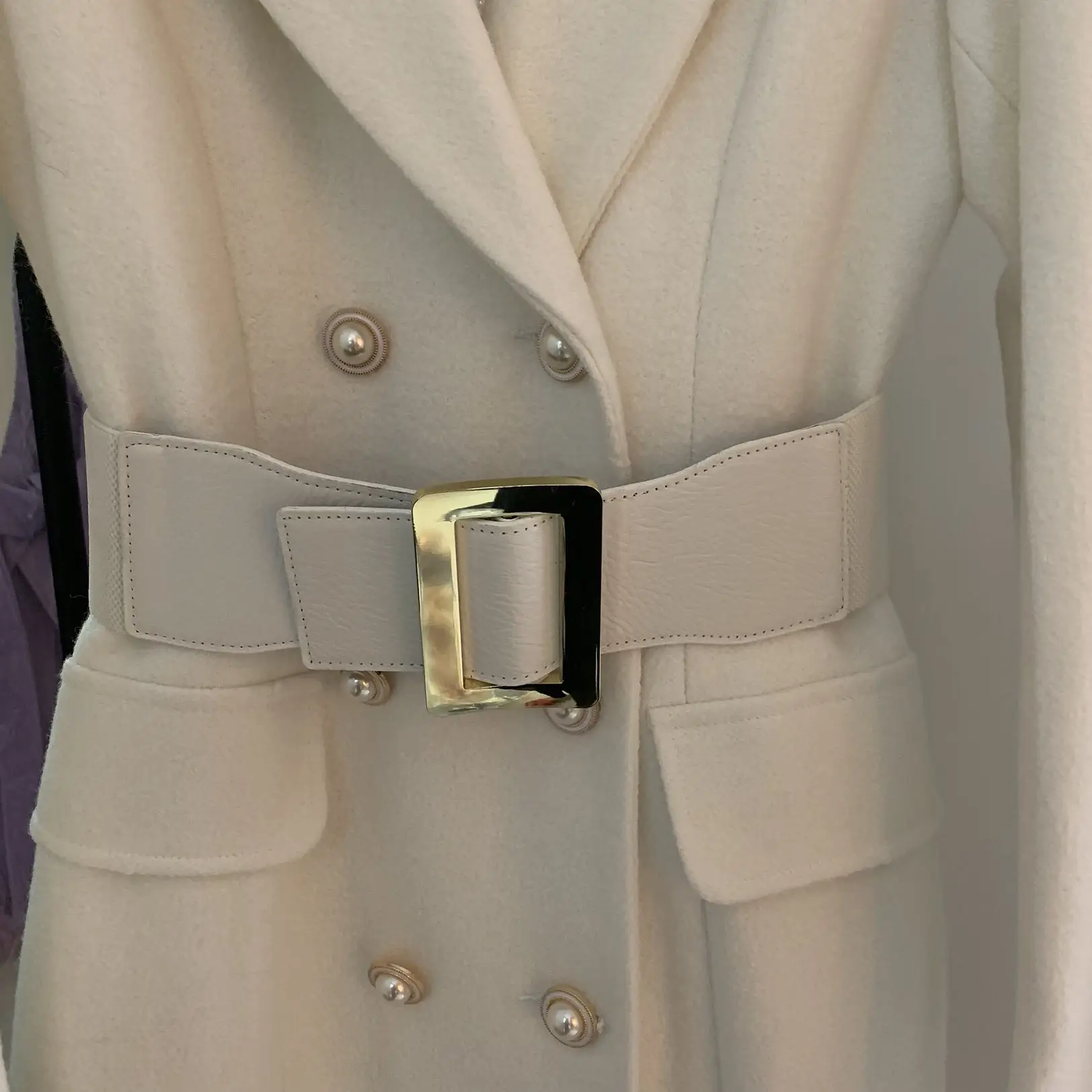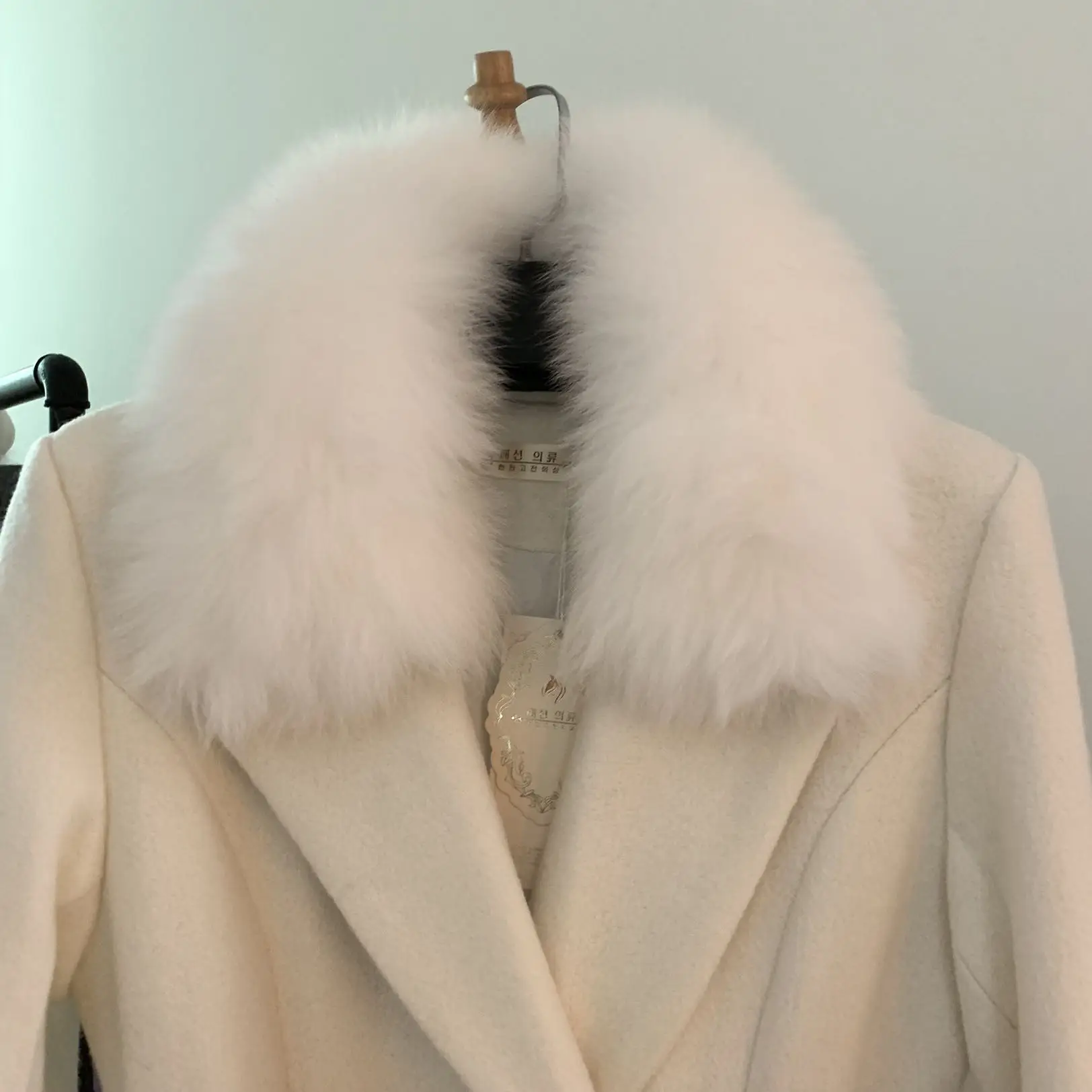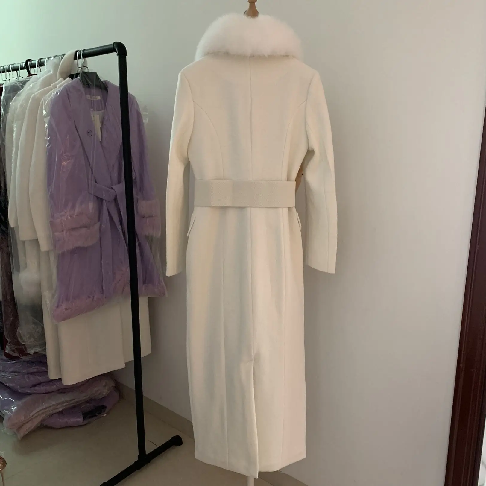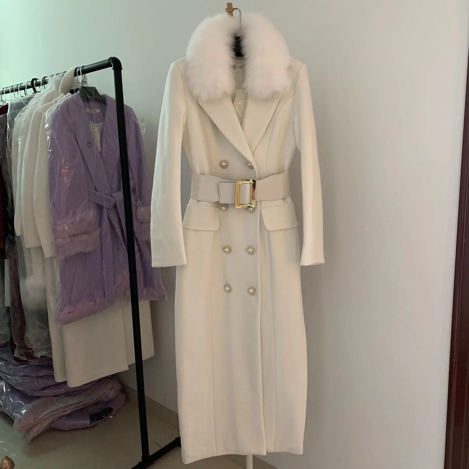 Женское кашемировое пальто с воротником из натурального Лисьего меха, двубортное приталенное пальто из смешанной шерсти, модель F925 на зиму