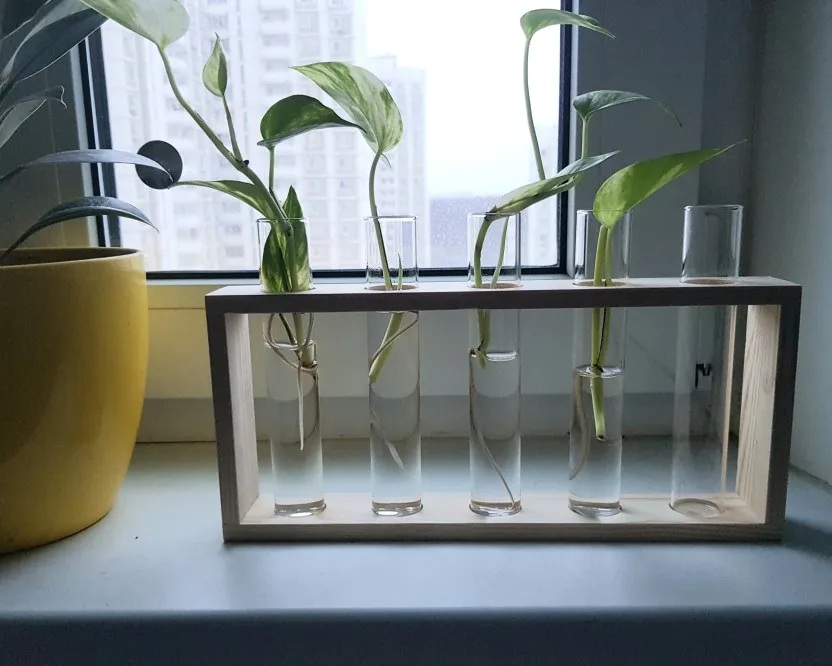 Ваза из прозрачного стекла, деревянная рамка, железо, искусство бонсай для террариума, настольные украшения, Террариум, гидропоника, вазы для растений, винтажный цветочный горшок